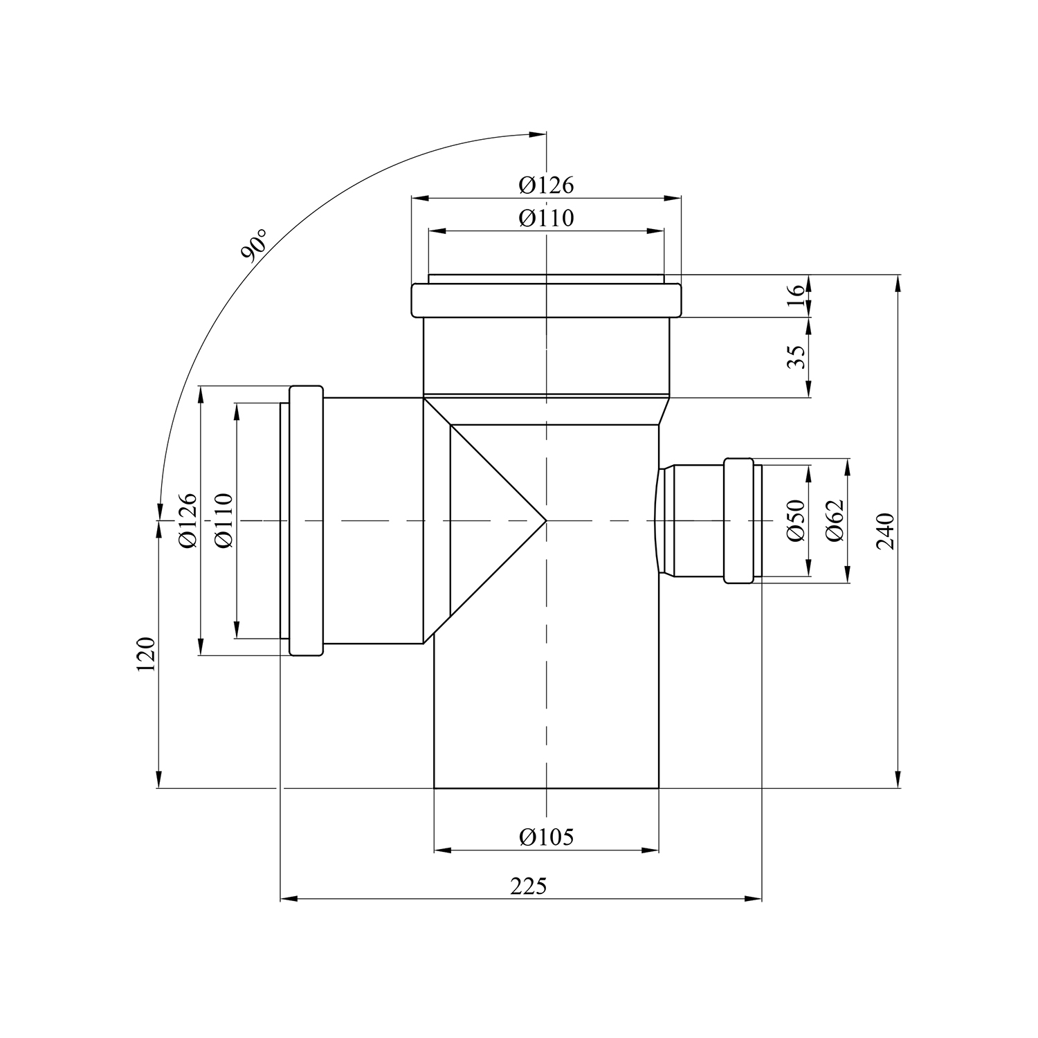Характеристики Крестовина Rozma 110х110х50/90° для внутренней канализации код товару CV018645