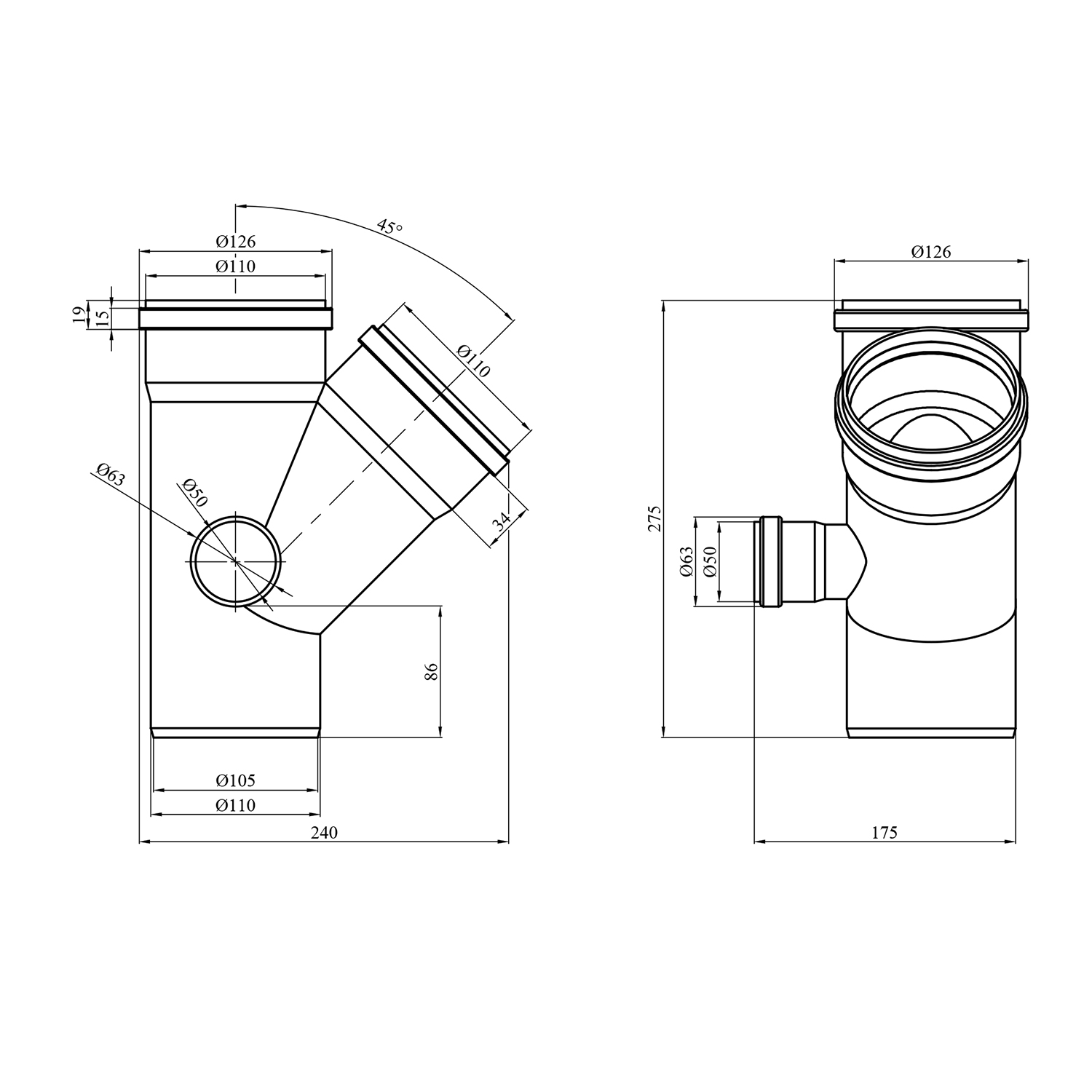 Диаметры: основной 110 мм, дополнительный отвод 50 мм.