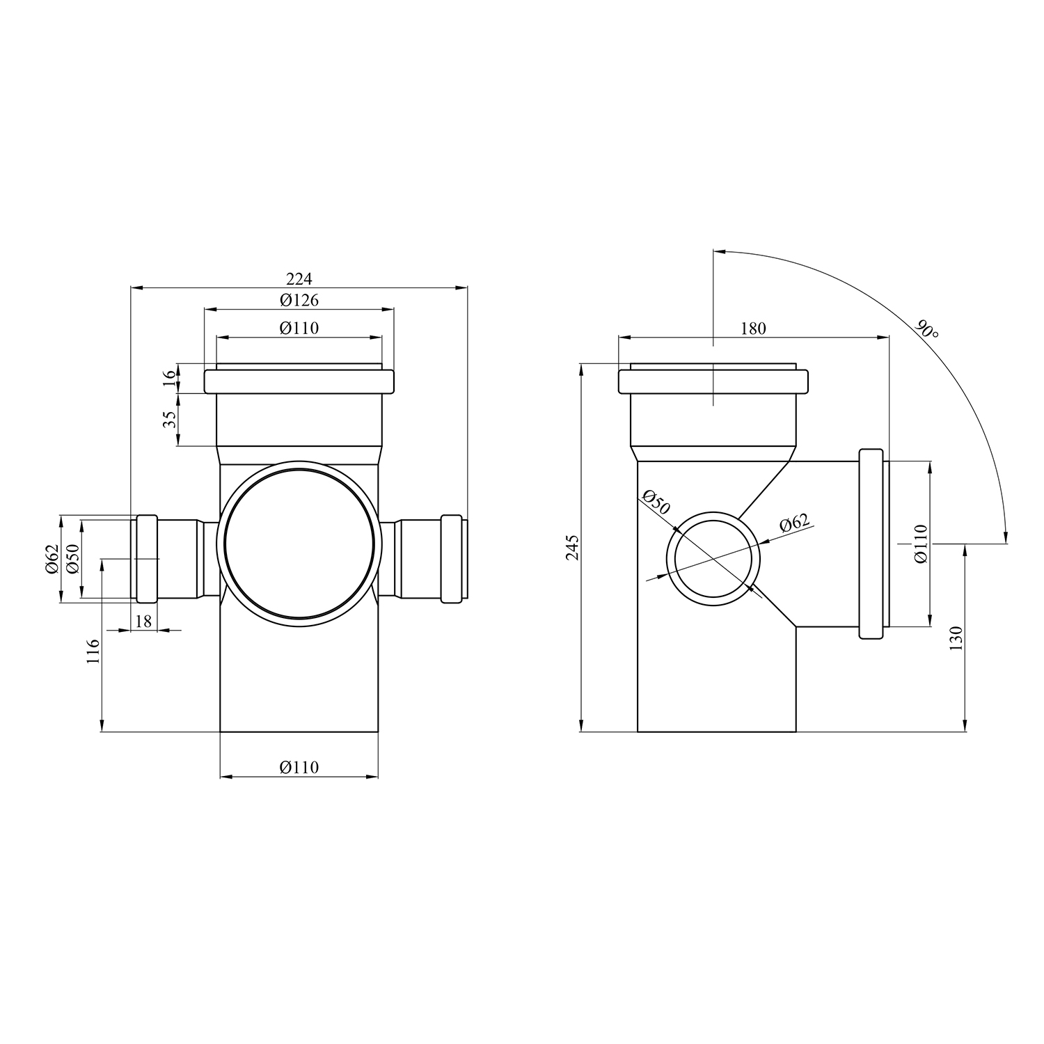 Крестовина двухплоскостная Rozma 110х110х50х50/90° для канализации