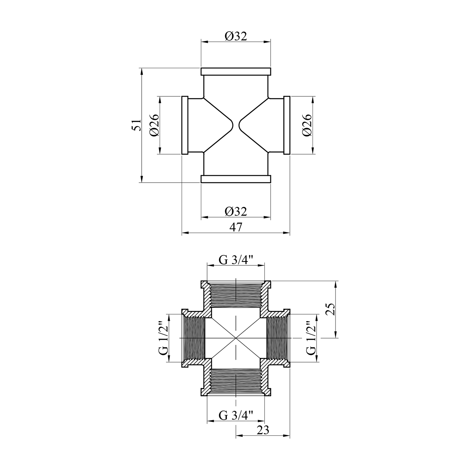 - 3/4''х1/2''х3/4"х1/2"