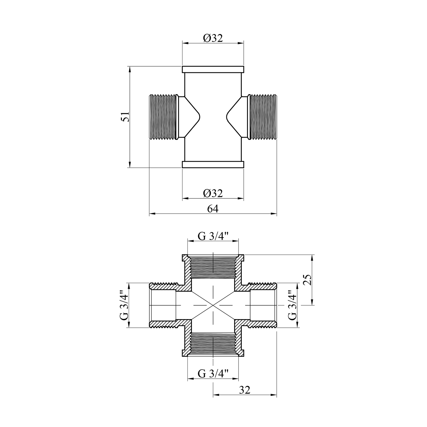 Описание Крестовина LexLine 3/4 ВНВН никелированная НК4604-Вн код товару CV029944