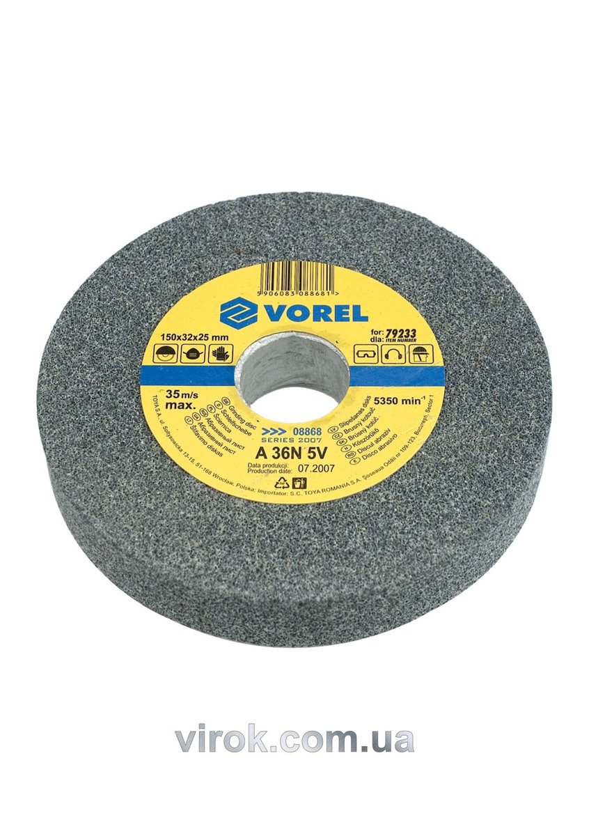Характеристики Круг для точила VOREL : 150х31,75х25 мм (грубозернистий) [10] код товару 08868