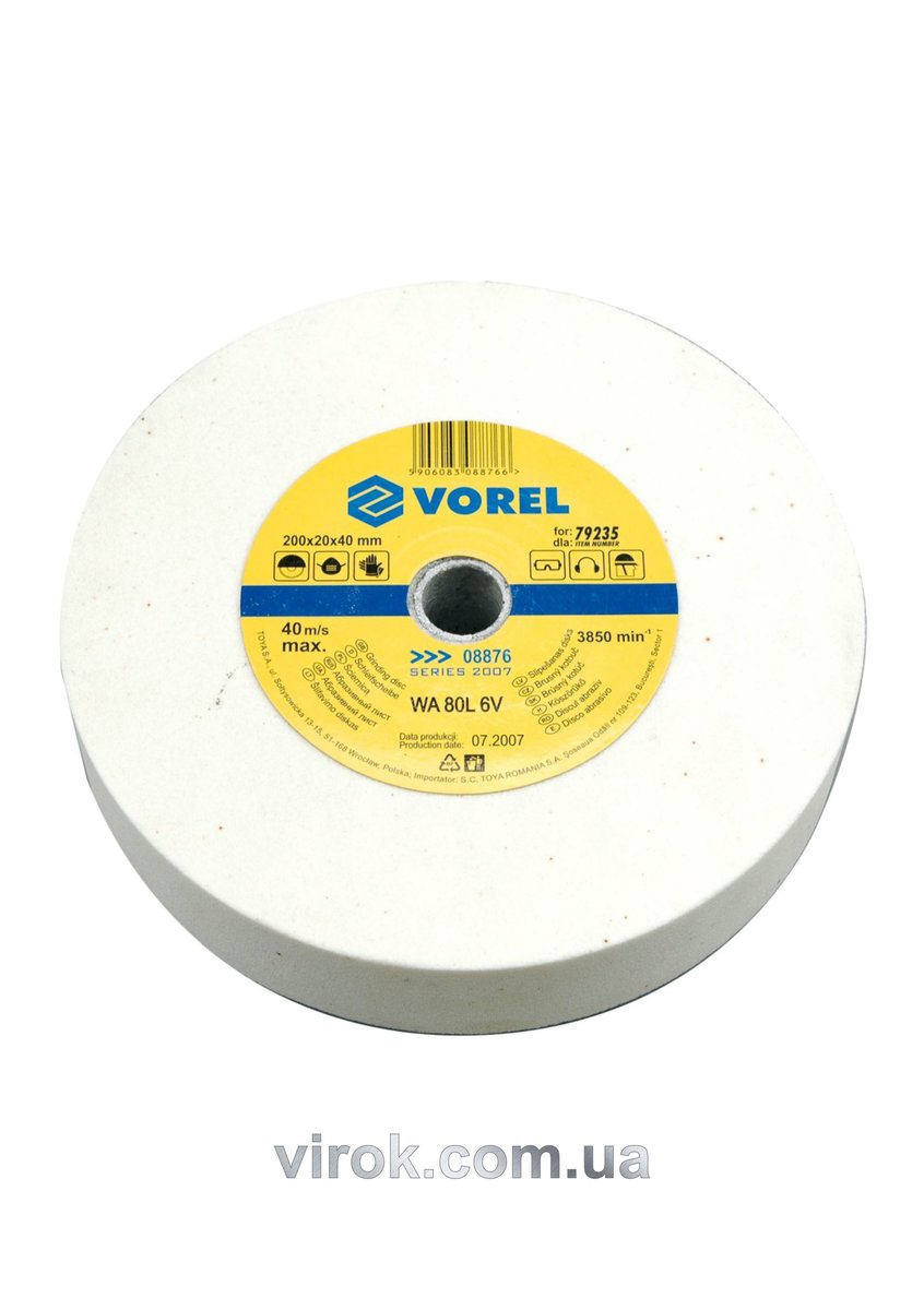 Описание Круг для точила VOREL 200 х 20 х 40 мм (белый, мелкозернистый) (VO-8876) код товару 08876