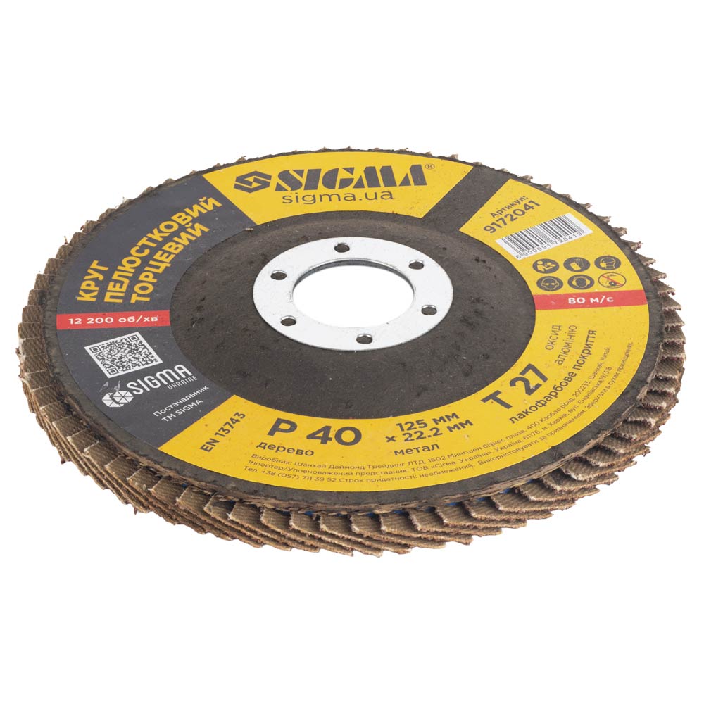 Круг лепестковый Т27 Ø125мм P40 SIGMA (9172041) код товару 9172041 Sigma