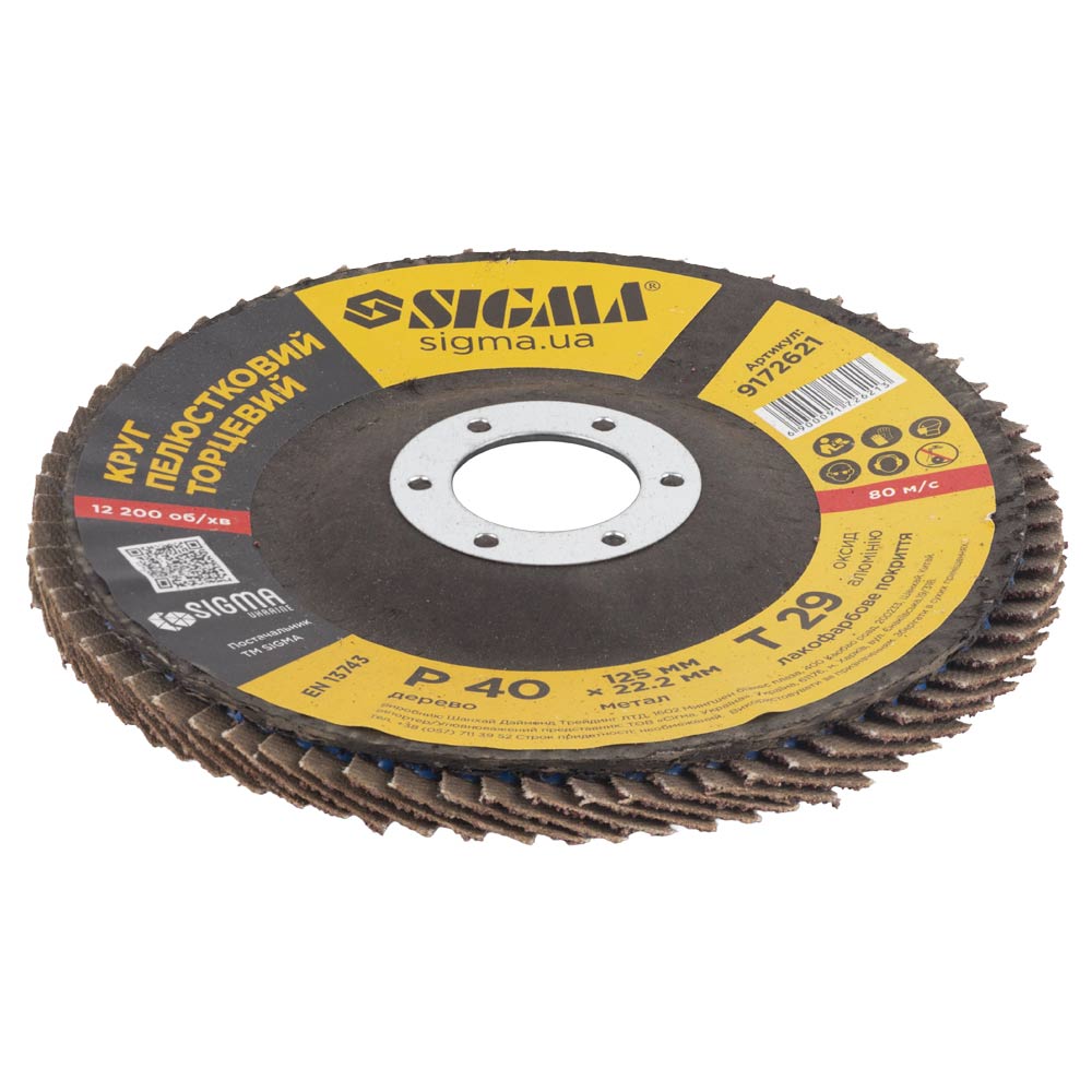 Круг лепестковый торцевой T29 Ø125мм P40 SIGMA (9172621) код товару 9172621 Sigma