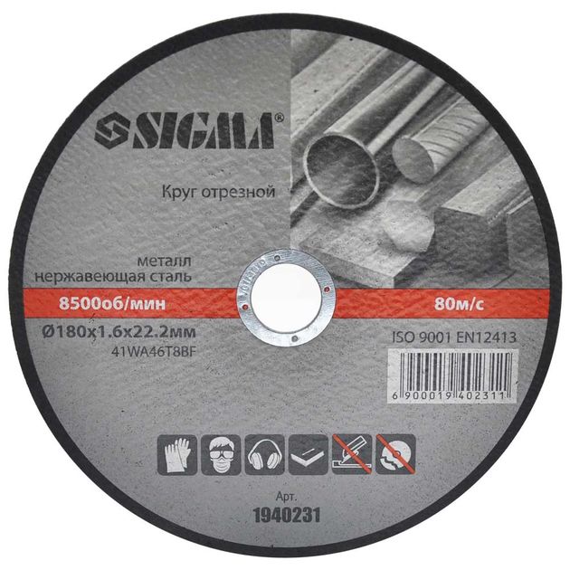 Описание Круг отрезной по мет. и нерж. стали Ø180×1.6×22.2мм SIGMA 8500об/мин код товару 1940231