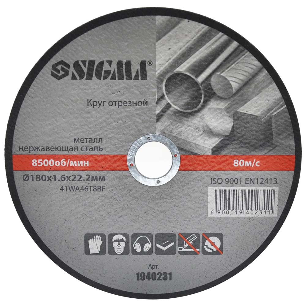 Описание Круг отрезной по металлу и нержавеющей стали Ø180×1.6×22.2мм, 8500об/мин SIGMA код товару 1806