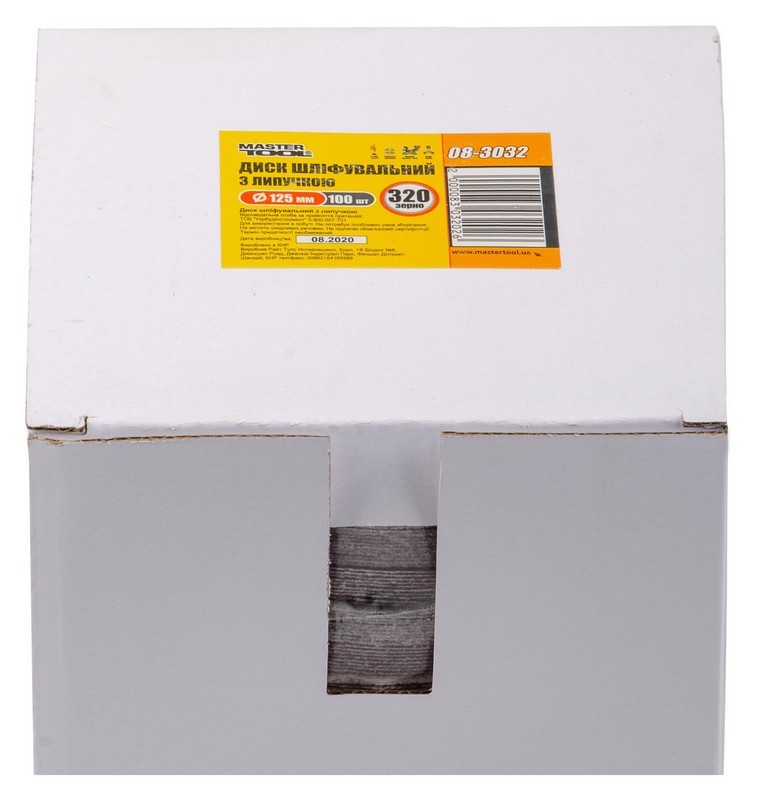 Характеристики Круг шлифовальный MASTERTOOL 125 мм зерно 320 (липучка) код товару 08-3032