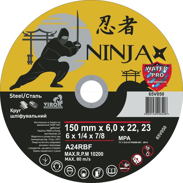 Описание Шлифовальный круг по металлу NINJA 150x22,23 мм тип 27 t=6 мм код товару 65V050