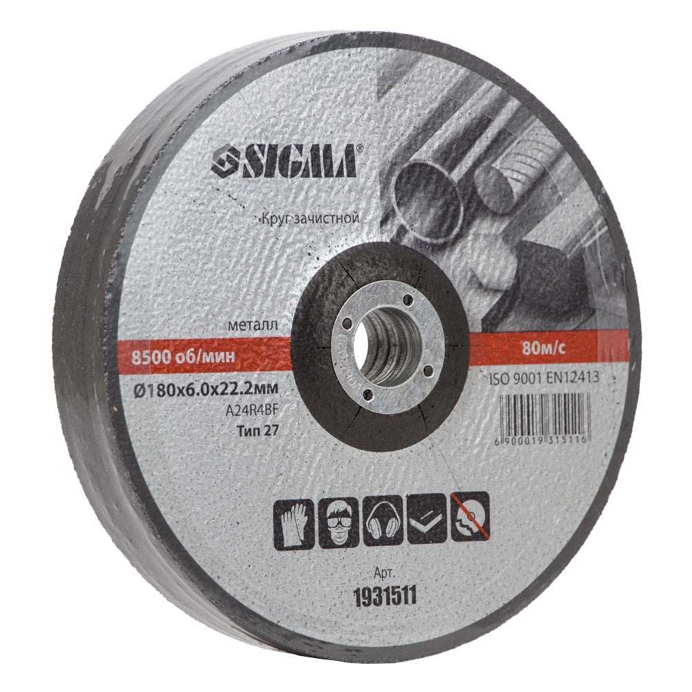 Характеристики Круг зачистной по металлу Ø180×6.0×22.2мм, 8500 об/мин SIGMA код товару 1931511
