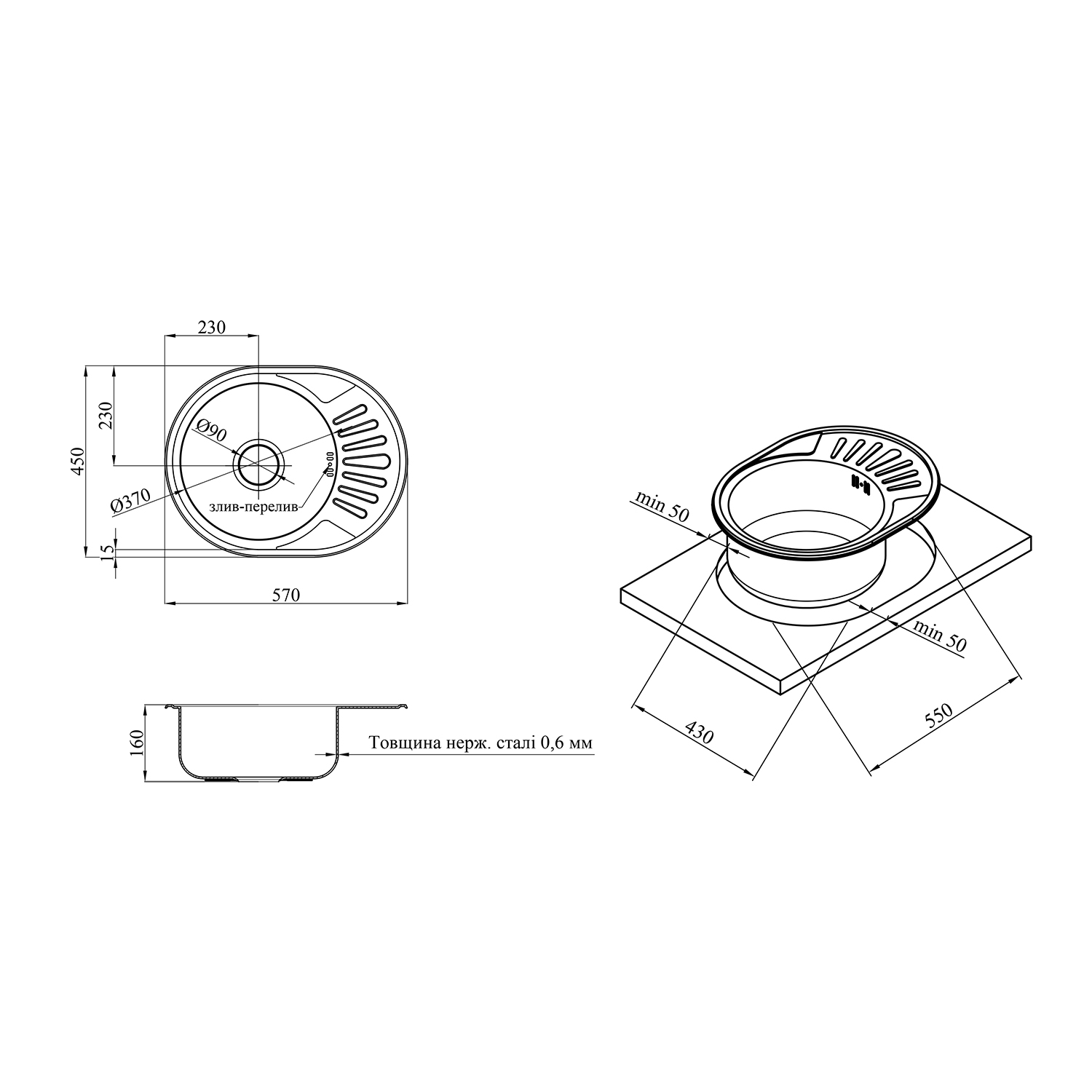 Описание Кухонная мойка Kroner KRP Dekor 5745 (0,6 мм) код товару CV022771