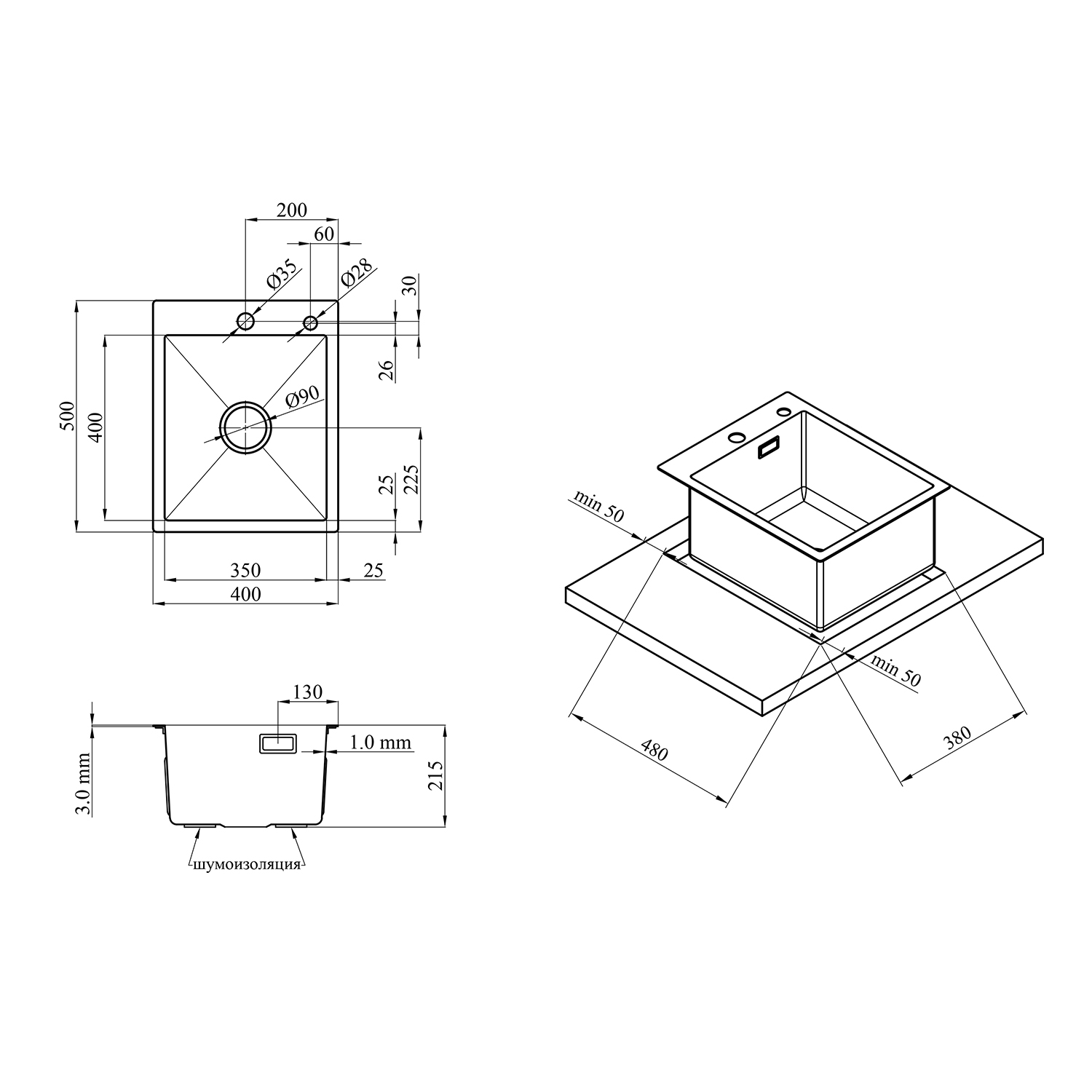 Описание Кухонная мойка Kroner KRP PVD Schwarze - 4050HM (3,0/1,0 мм) код товару CV035374