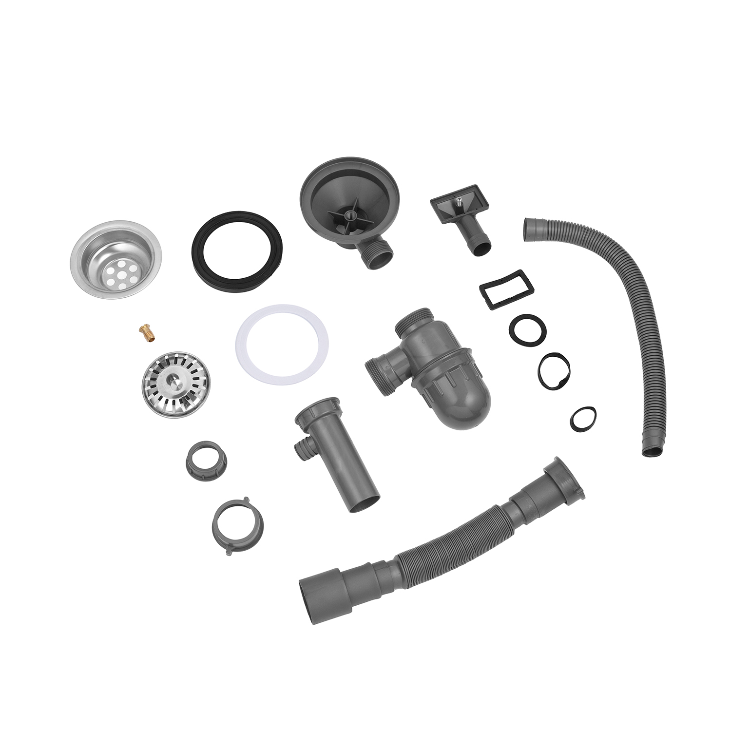 - Мойка, сифон, слив-перелив, корзинчатый вентиль, уплотнительная лента, крепления.