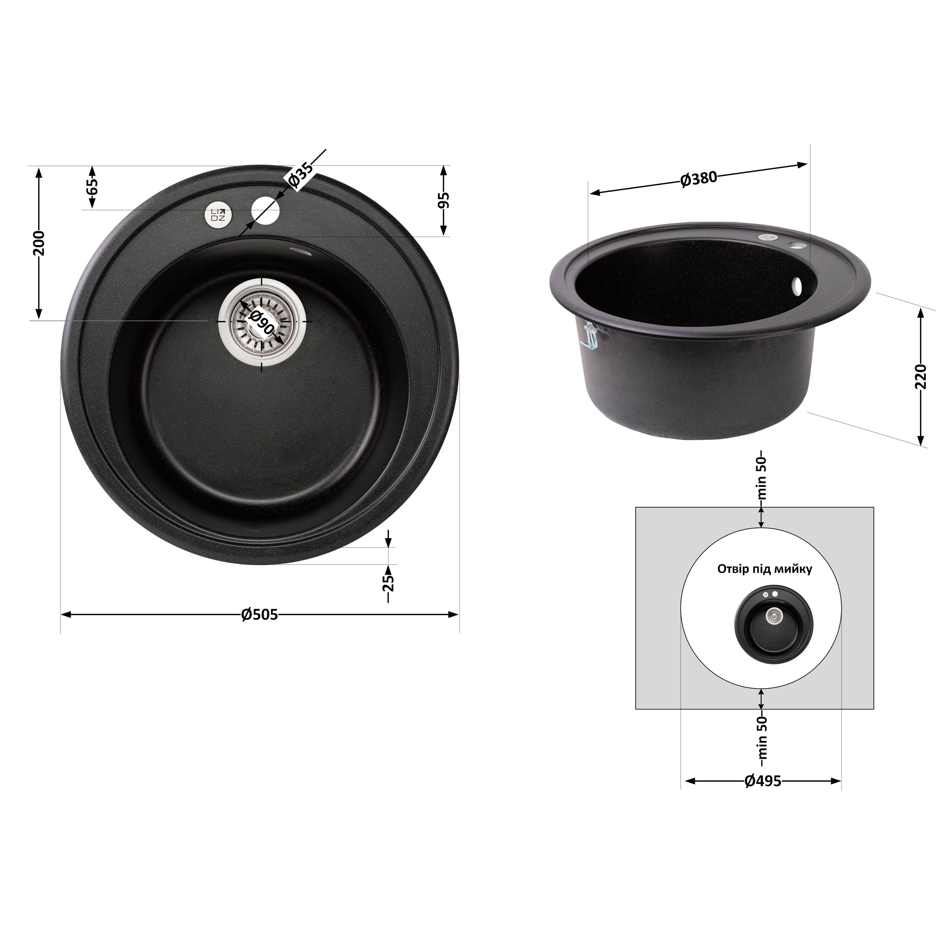 Описание Кухонная мойка Lidz D510/200 BLM-14 код товару SD00043321