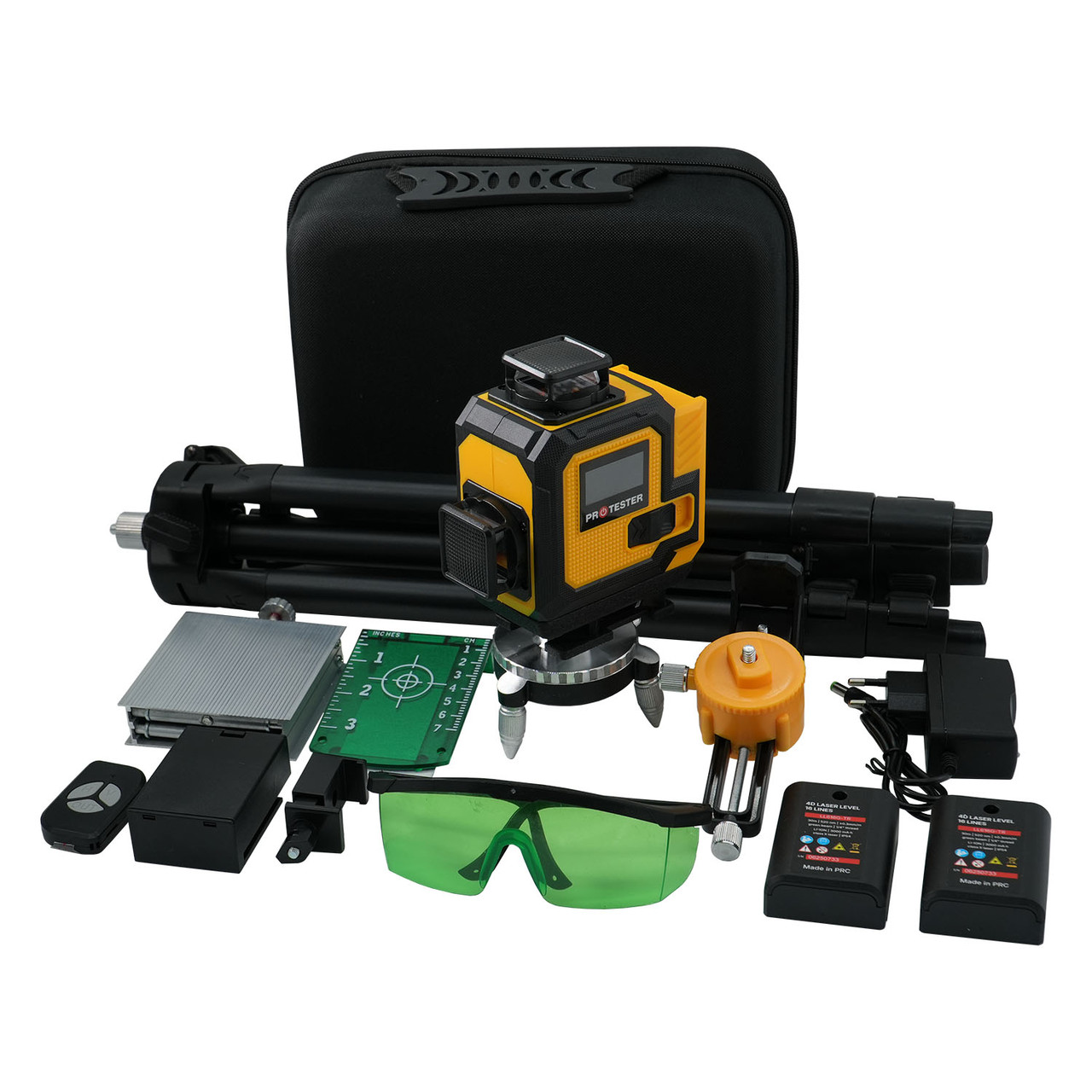 Характеристики Лазерный уровень 16 линий 4D (2xH360/2xV360, LCD-дисплей, пульт ДУ + ШТАТИВ - зеленый луч) PROTESTER LL616G-TR код товару LL616G-TR