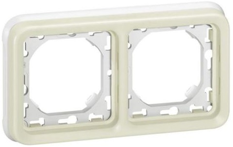 - Ступінь захисту IP 55 - IK 07, коробки для накладного монтажу, супорти для вбудованого монтажу, програма Plexo, установка горизонтальна, двопостовий супорт із рамкою для двох механізмів Plexo, відстань між точками кріплення - 71 мм