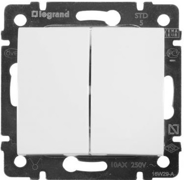 Характеристики Legrand Вимикач двоклавішний 10АХ 250 автоматичні клеми (Valena Classic)[білий] код товару 774405