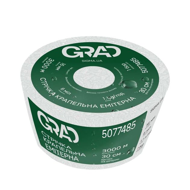 Описание Капельная лента с плоским эмиттером Ø16мм 20см 3000м GRAD код товару 5077625