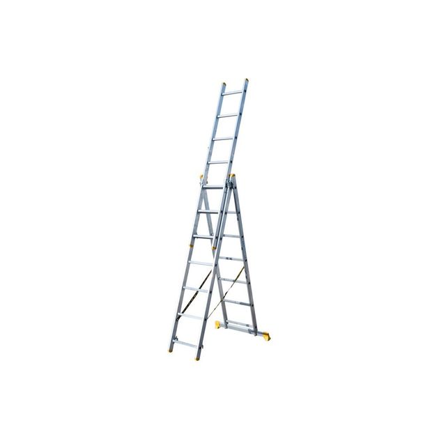 Описание Лестница алюминиевая MASTERTOOL 3-секционная, 3x7 ступеней код товару 79-1307