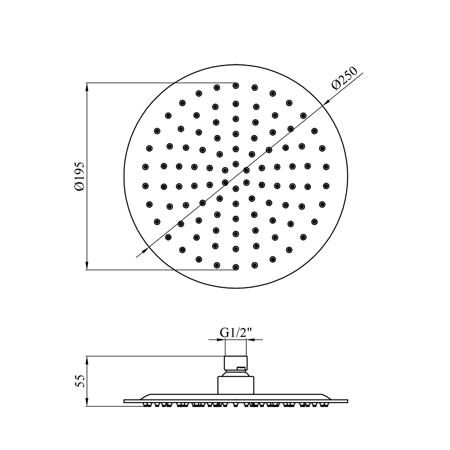 Описание Лейка для душа Kroner KRP, нержавеющая сталь, классическая, ESG703-25 код товару CV022951