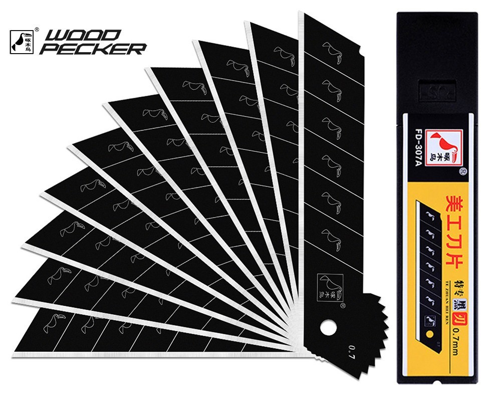 Описание Лезвия для ножа 25 мм черные ультра острые Woodpecker, 10 шт. код товару FD-307A