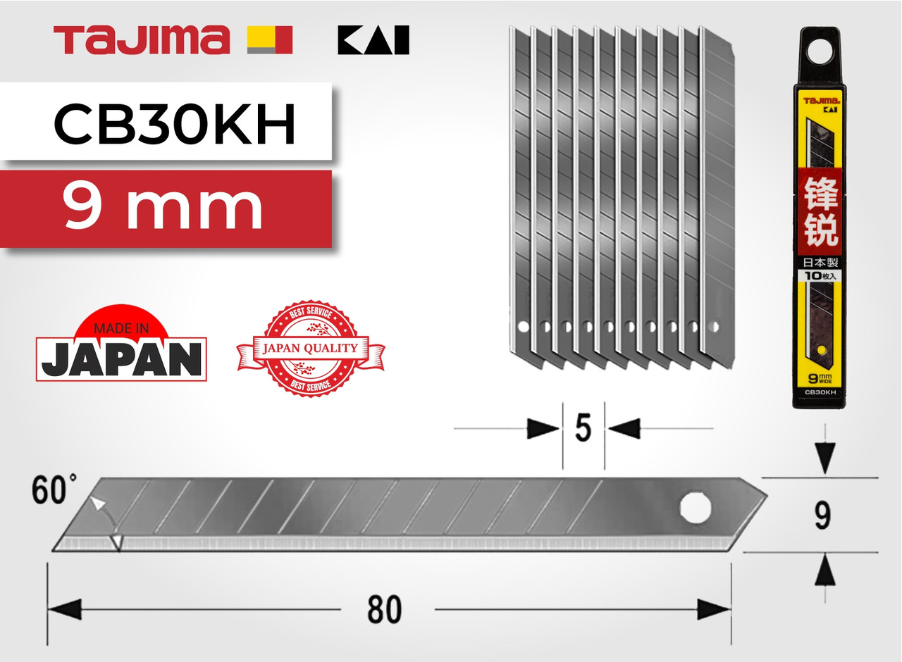 Характеристики Лезвия для ножа 9 мм TAJIMA (Япония) CB30KH ультра острые сегментные 10 шт код товару 1102-2544-COPY