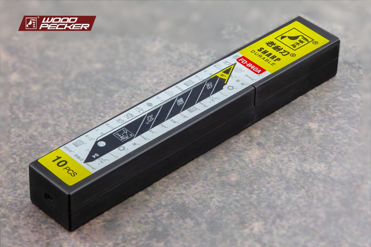 Характеристики Лезвия для ножа 9 мм угол 30° Woodpecker черные ультра острые 10шт FD-B40A код товару FD-B40A-COPY