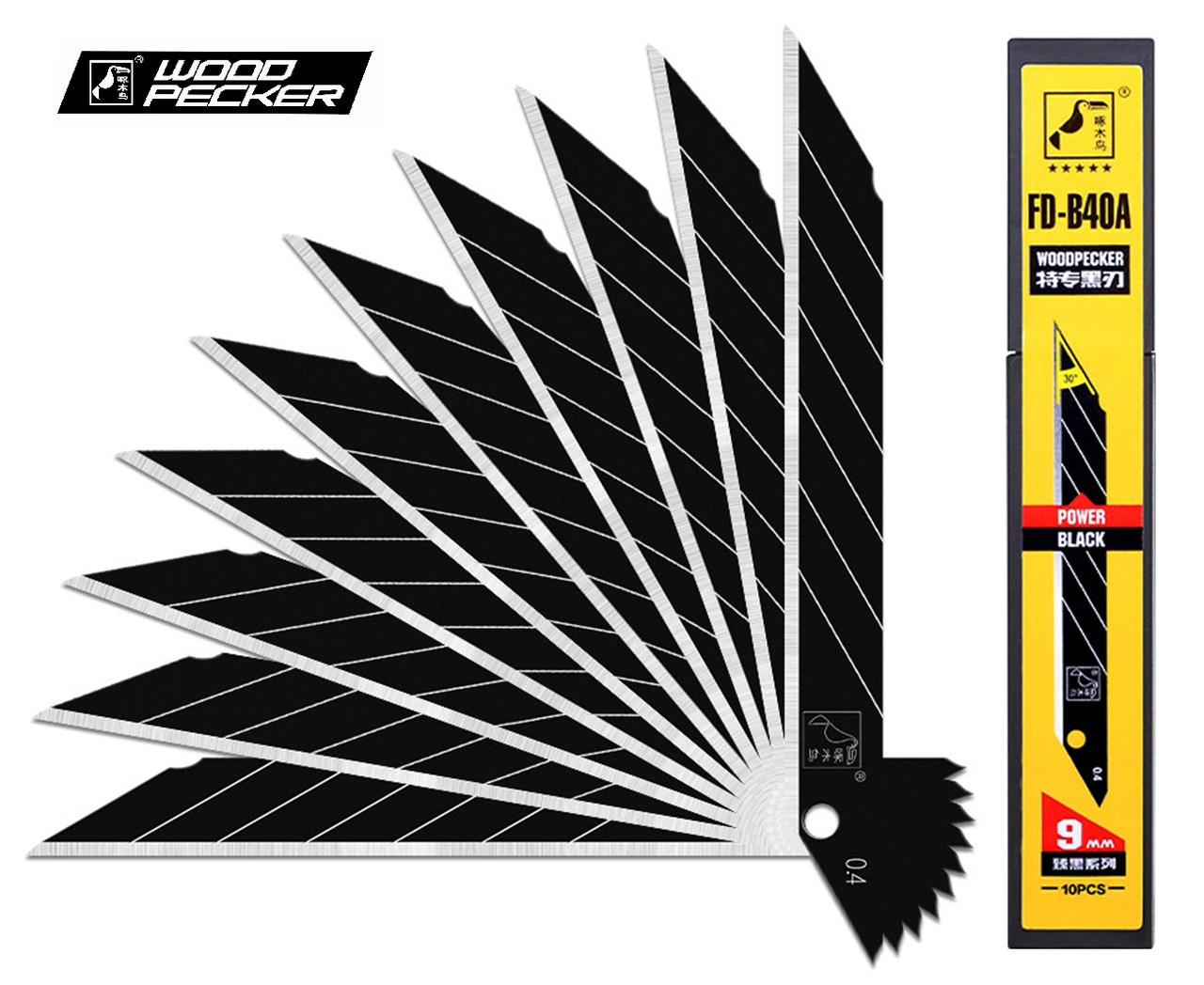 Профессионалные лезвия FUDA Woodpecker FD-B40A, 9 мм, угол 30°, черные, 10 шт