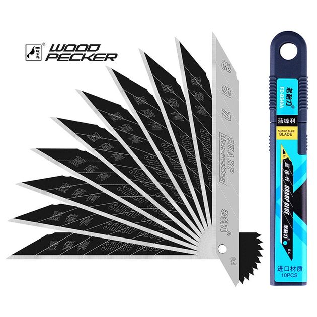 Характеристики Лезвия для ножа 9мм черные нержавеющие угол 30° Woodpecker 10шт FD-BS40A код товару FD-BS40A-COPY