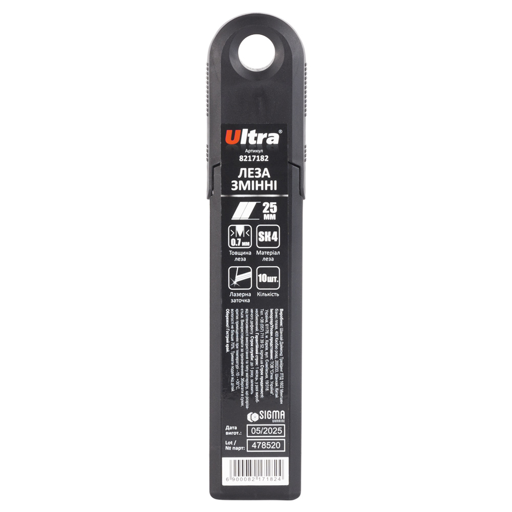 Описание Лезвия сменные прямые 25×125×0.7мм 6 сегментов 10шт ULTRA (8217182) код товару 8217182