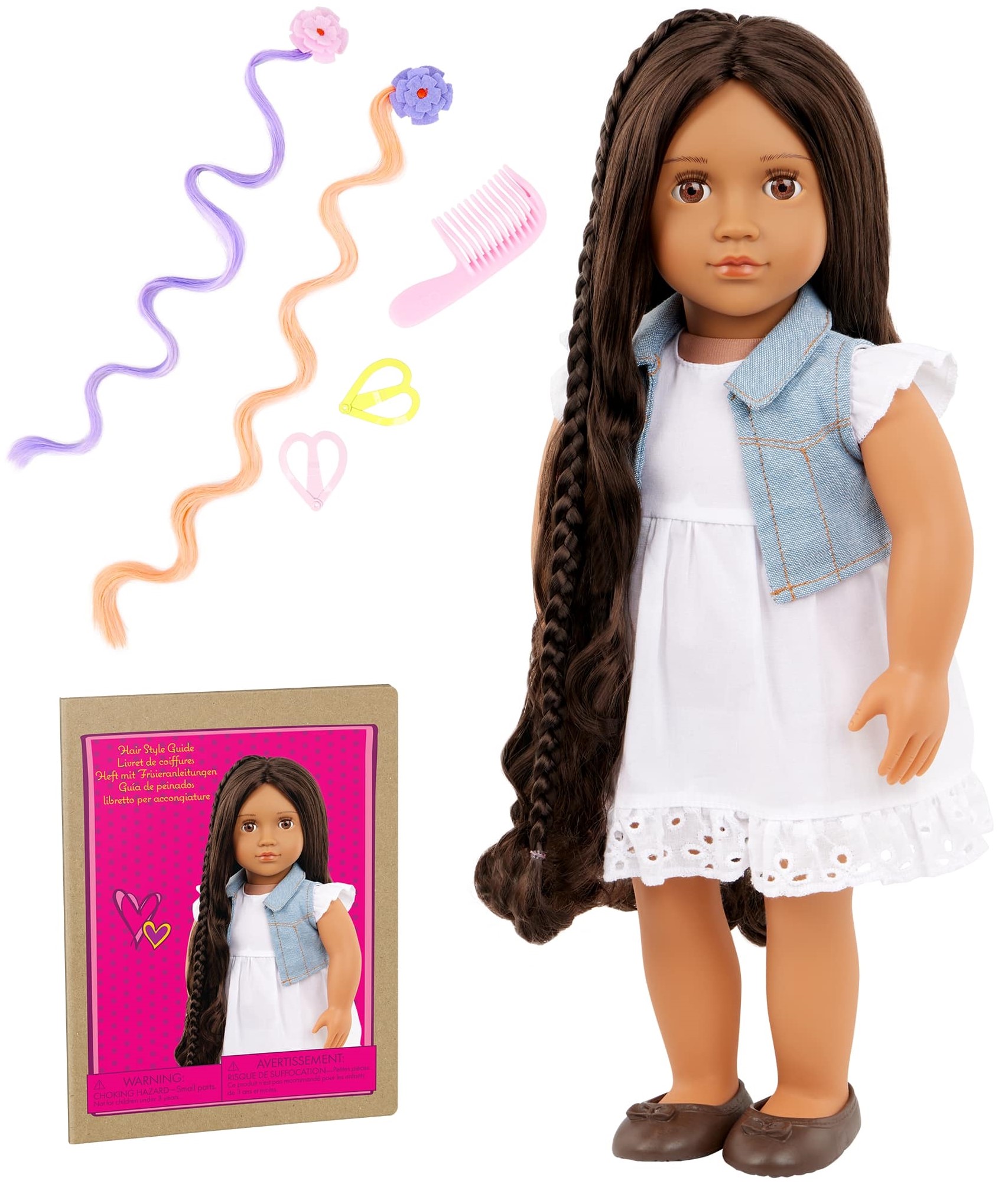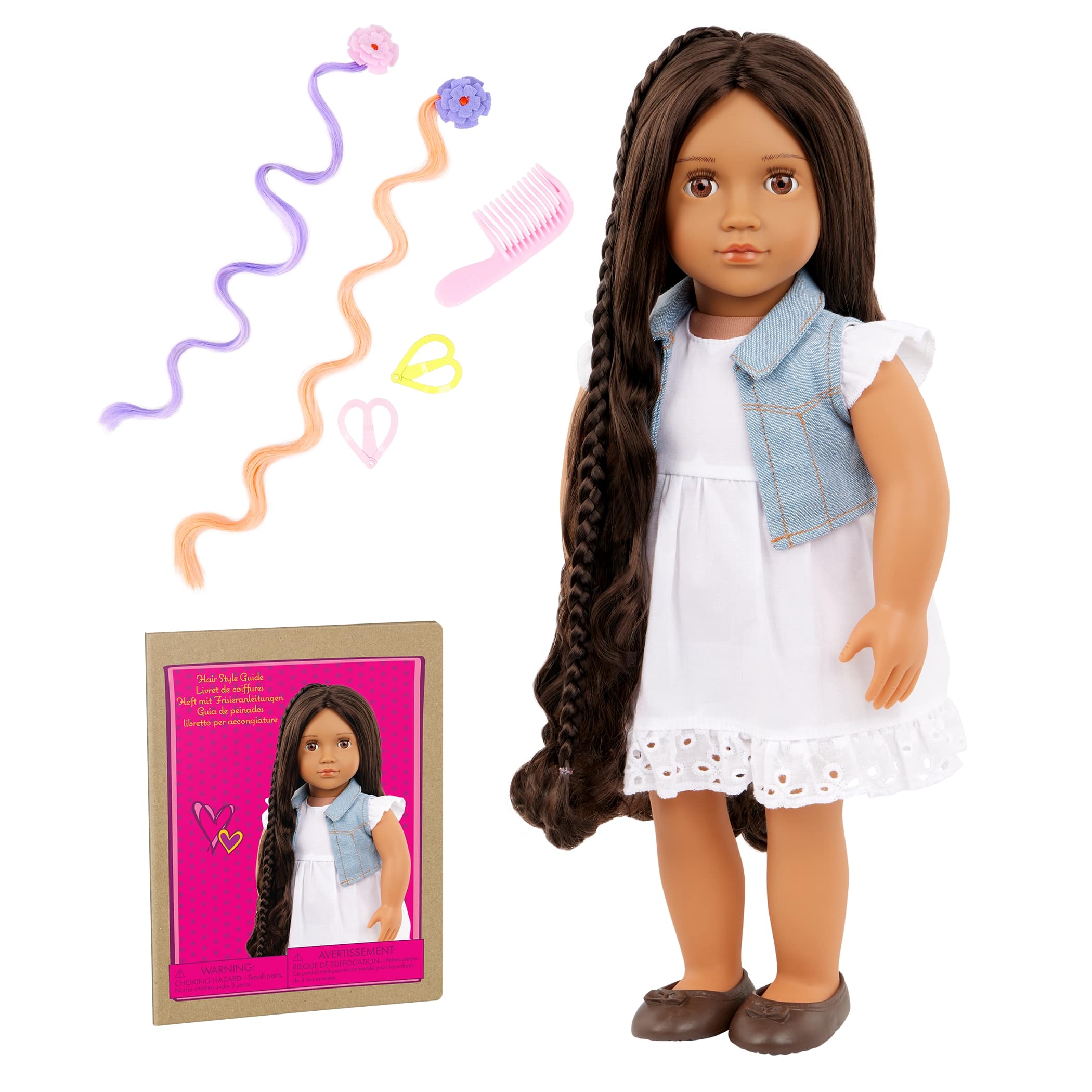 Відкрийте світ фантазії та стилю разом із Перлою від Our Generation! Ця чарівна 46-сантиметрова лялька має надзвичайно довге темно-каштанове волосся, яке можна розчісувати, заплітати та укладати в безліч модних зачісок. А головна особливість — її косу можна подовжити або вкоротити одним натисканням кнопки!