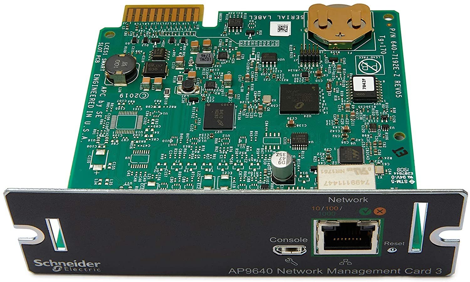 Карта мережевого управління (The Network Management Card 3) забезпечує необхідний і безпечний віддалений моніторинг і управління ДБЖ для критично важливого контролю. Високошвидкісний процесор забезпечує швидке та ефективне підключення до Gigabit Ethernet і одночасне підключення декількох користувачів до простого веб-інтерфейсу користувача або інтерфейсу командного рядка. Виконуйте попереджувальні дії та легко усувайте несправності за допомогою докладних даних і журналу подій для своєчасного усунення неполадок.