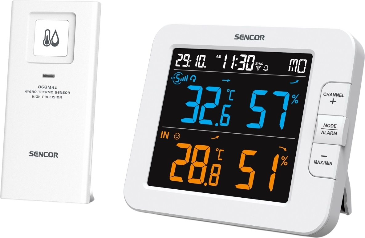 Метеостанція Sencor, внутр/зовн вимірювання, температура, вологість, час, дні тижня, календар, підтримує платформи Android та iOS, Білий