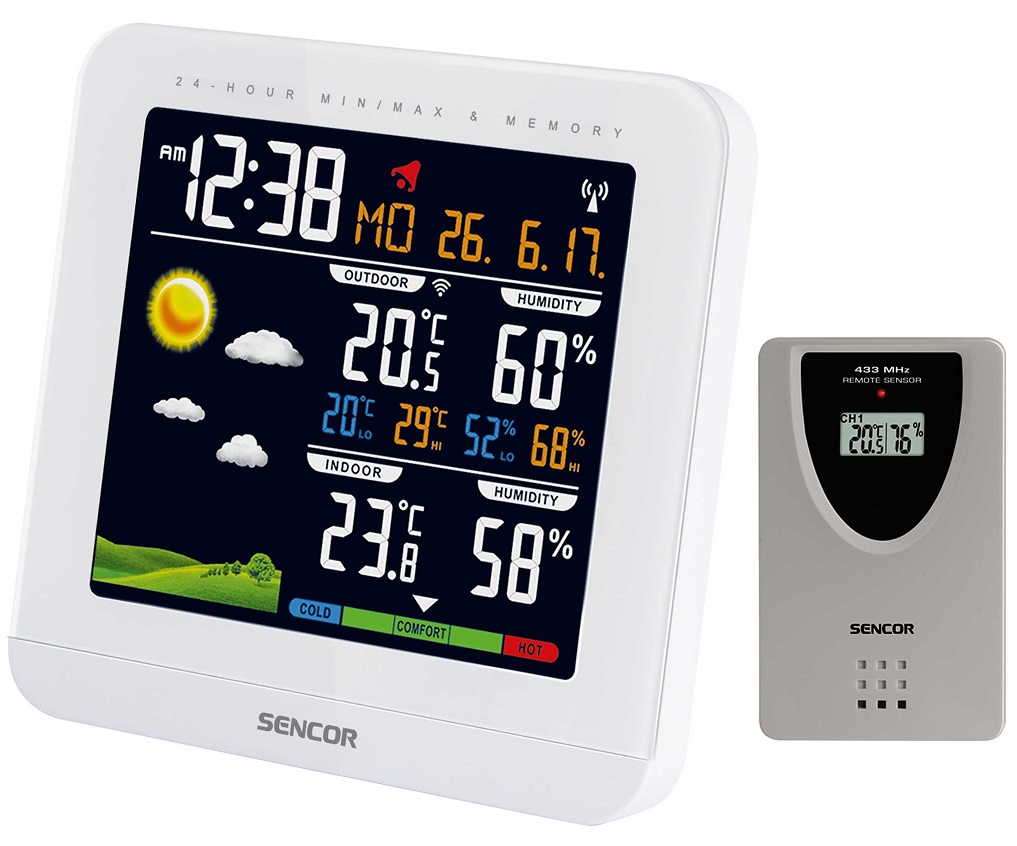 Метеостанція Sencor, внутр/зовн вимірювання, від мережі/АААх3+АААх2, темп-ра, вологість, час, прогноз погоди, білий