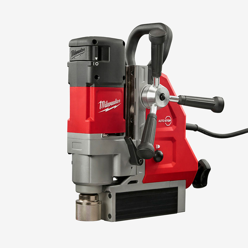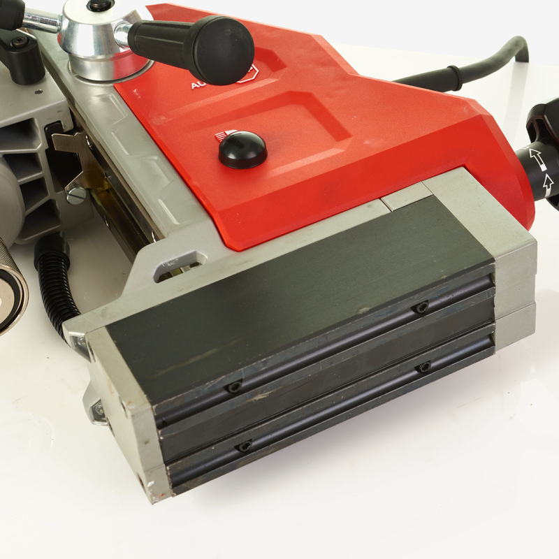 1200 Вт мощность двигателя с оптимальной скоростью сверления. 2 скорости редуктора: 475 об/мин для сверления кольцевыми фрезами и 730 об/мин для сверления сверлами с цилиндрическим хвостовиком. AUTOSTOP датчик сдвига: определяет чрезмерное вращение и автоматически отключает питание для защиты оператора. Постоянный магнит 8890 Н исключает случайное отключение магнита для защиты оператора и позволяет легко позиционировать инструмент. Максимальный диаметр сверления кольцевой фрезой 41 мм и максимальный диаметр хвостовика сверла 13 мм. Безключевой 19 мм Weldon хвостовик для быстрой и легкой смены аксессуаров. Длина хода двигателя 146 мм для применения различных аксессуаров. Установка рукоятки подачи без использования ключей с левой или правой стороны. Встроенная светодиодная подсветка для освещения рабочей поверхности. Комплектация Дрель на магнитной станине MDP 41 - 1 шт. Распылитель СОЖ - 1 шт. Патрон 13мм с адаптером Weldon 1 шт. Штифт для выбрасывания - 1 шт. Ключ для патрона 1 шт. Предохранительный ремень - 1 шт. Кейс.