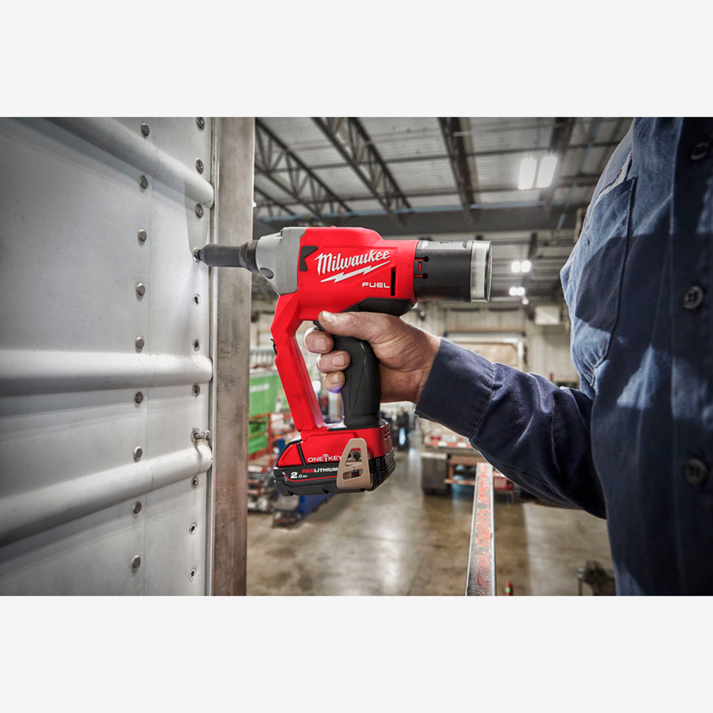 Инструмент для заклепок M18 FUEL с ONE-KEY это оптимизированное аккумуляторное решение, которое обеспечивает быструю и легкую заклепку, сохраняя производительность, долговечность и размер. Вытягивает до 900 заклепок Ø4,8 мм из алюминия или 500 заклепок Ø6,4 мм из алюминия на полностью заряженном аккумуляторе M18 2,0 Аг. Закрепите все глухие заклепки, включая алюминий, сталь, нержавеющую сталь и медь, от 4,8мм до 7,0мм. 20 000 Н тягового усилия с длиной хода 30 мм дают вам возможность без труда работать с заклепками больших диаметров. Легкий процесс чистки губок. Для удобства пользователя гаечный ключ для снятия носовой части крепится на корпусе. Хранение сменных насадок в инструменте для удобства пользователя. Отслеживание инструментов и безопасность ONE-KEY предлагает бесплатную облачную сеть отслеживания и платформу управления запасами для ваших инструментов. ONE-KEY также имеет функцию дистанционной блокировки. FUEL - бесщеточный двигатель POWERSTATE от MILWAUKEE , аккумуляторная батарея REDLITHIUM и электронный интеллект REDLINK PLUS обеспечивают отличную мощность, время работы и долговечность. Универсальная аккумуляторная система: работает со всеми аккумуляторами MILWAUKEE M18 . Комплектация Заклепочник M18 FUEL ONEFPRT-0 - 1 шт. Аккумулятор M18 В2 2.0Ач - 2 шт. Зарядное устройство M18-М12 FC - 1 шт. Ключ - 1 шт. Насадки под заклепки 4 шт. HD кейс.