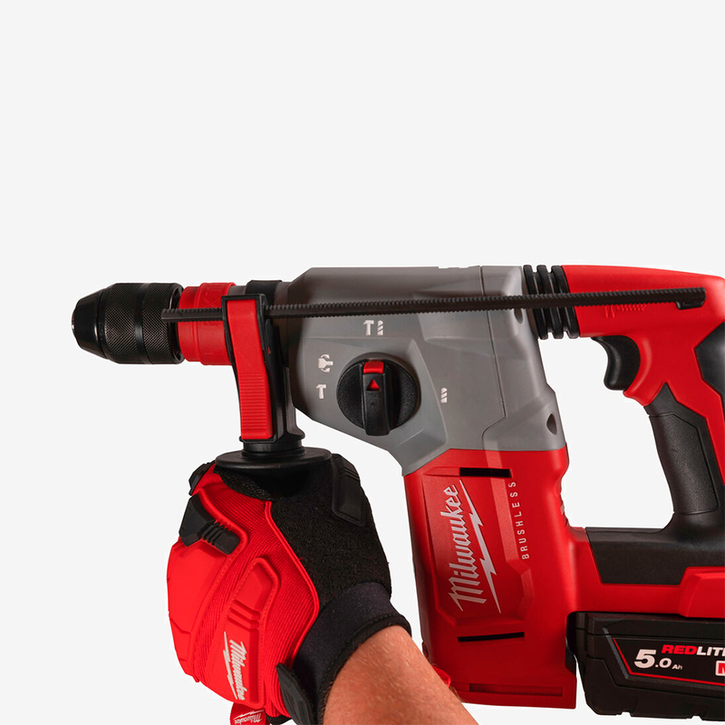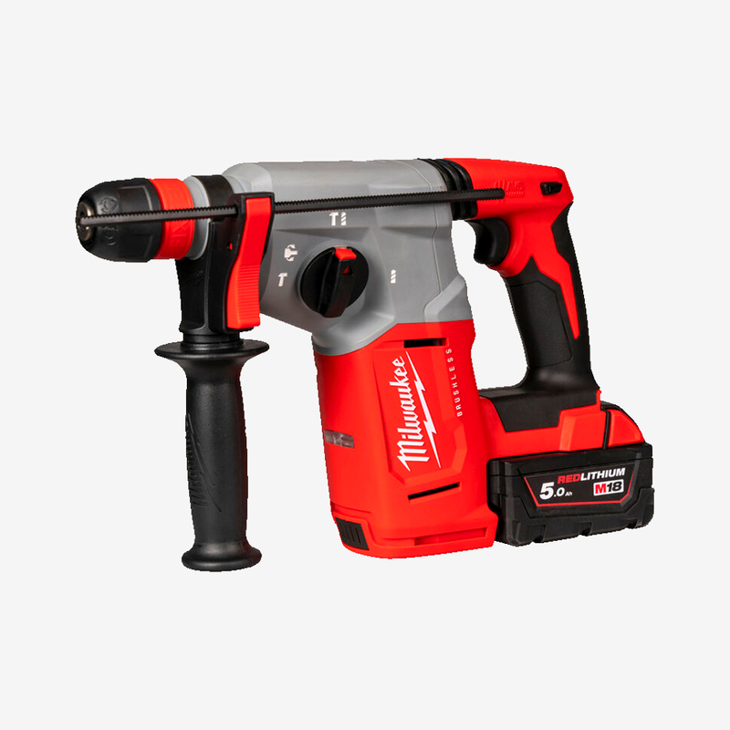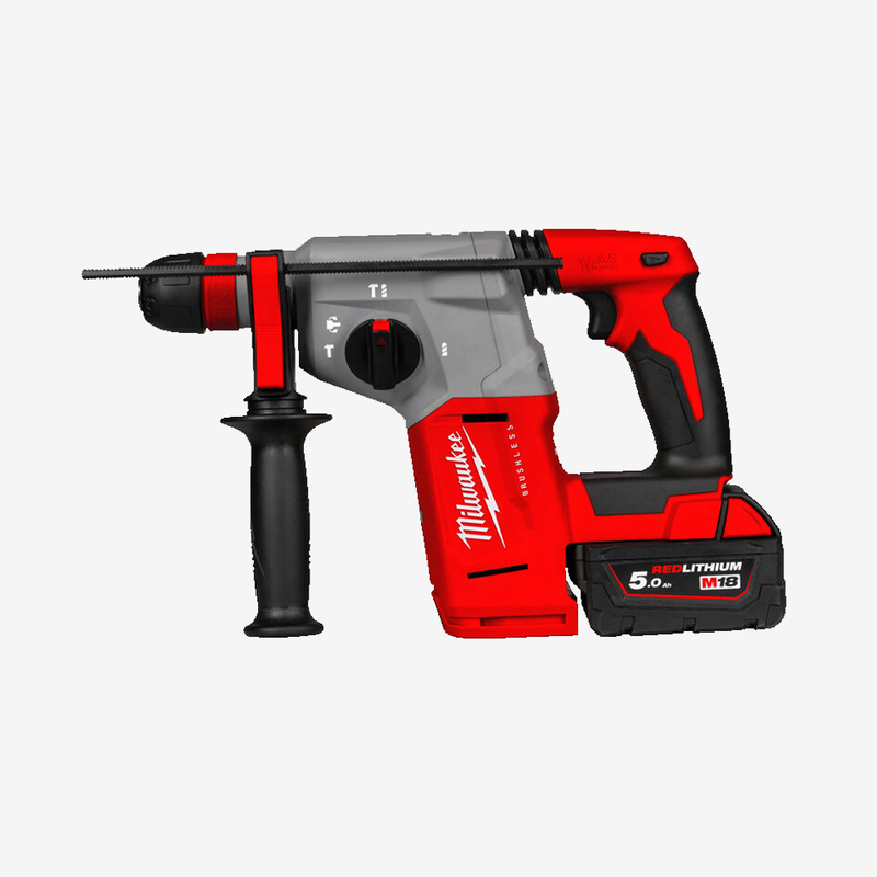 Компактный и эргономичный для удобства пользователя. Система FIXTEC замена патрона без инструментов. Без щеточный двигатель POWERSTATE высший ресурс, большая мощность и продолжительность работы. Металлический корпус редуктора, прецизионная посадка шестерен, увеличенный срок службы. 4 режима: сверление с ударом, только удар, сверление, Variolock для предварительной установки долота. Гибкая аккумуляторная система: работает от всех аккумуляторов MILWAUKEE M18 . Интеллектуальная система REDLINK обеспечивает защиту от перегрузки инструмента и батареи и увеличивает производительность. Совместим с системой удаления пыли M18 CDEX. Комплектация Перфоратор SDS-PLUS M18 BLHX-0 - 1шт. Аккумулятор M18 B5 5.0 Аг - 2 шт. Зарядное устройство M12-18 FC - 1 шт. Кулачковый патрон FIXTEC 13мм - 1шт. Боковая рукоять с ограничителем глубины - 1шт. HD кейс.