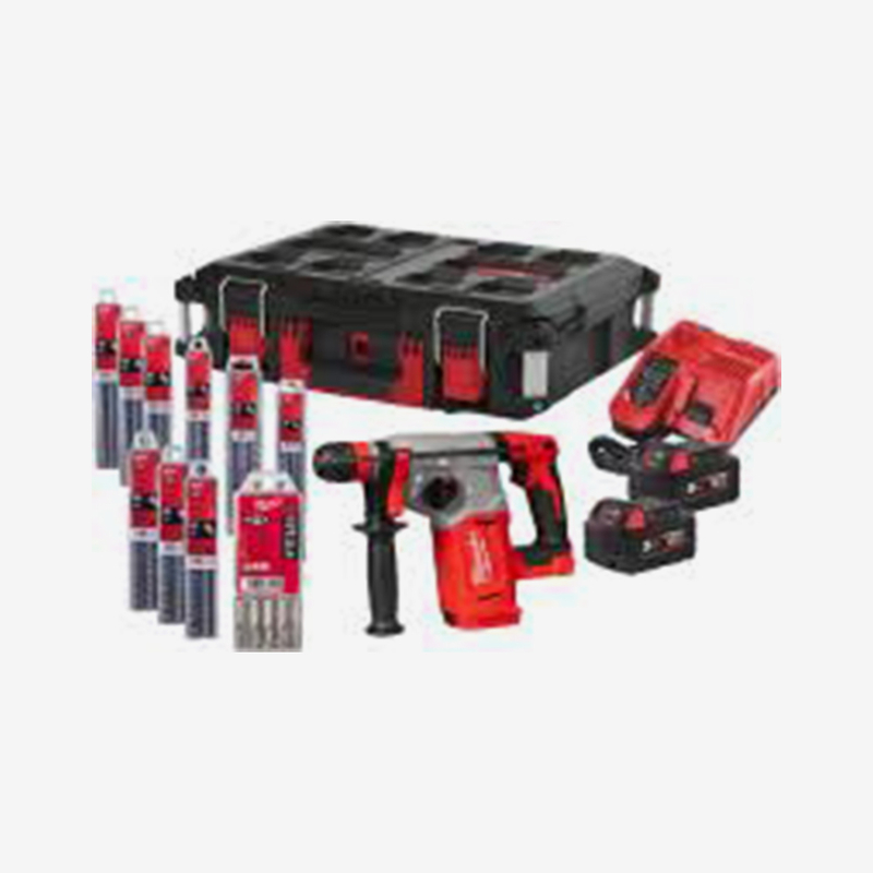 Компактный и эргономичный для удобства пользователя. Система FIXTEC – замена патрона без инструментов. Без щеточный двигатель POWERSTATE™ — высший ресурс, большая мощность и продолжительность работы. Металлический корпус редуктора, прецизионная посадка шестерен, увеличенный срок службы. 4 режима: сверление с ударом, только удар, сверление, Variolock для предварительной установки долота. Гибкая аккумуляторная система: работает от всех аккумуляторов MILWAUKEE® M18™. Интеллектуальная система REDLINK™ обеспечивает защиту от перегрузки инструмента и батареи и увеличивает производительность. Совместим с системой удаления пыли M18 CDEX. Комплектация Перфоратор SDS-PLUS M18 BLHX-0 - 1шт. Аккумулятор M18 B5 5.0 Ач - 2 шт. Зарядное устройство для M12-18 FC - 1 шт. Кулачковый патрон FIXTEC™ 13мм - 1шт. Набор буров SDS-PLUS - 1 шт. Бур SDS-PLUS MX4 6х165мм - 30 шт. Бур SDS-PLUS MX4 8х165мм - 30 шт. Бур SDS-PLUS MX4 10х215мм - 10 шт. Бур SDS-PLUS MX4 12х210мм - 10 шт. Бур SDS-PLUS MX4 12х260мм - 10 шт. Боковая рукоять с ограничителем глубины - 1шт. Кейс PACKOUT.