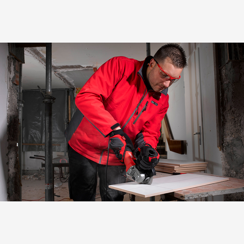 Эргономичный и компактный дизайн корпуса для комфортной работы длительное время (вес 2,0кг, длина 194мм). Защита от повторного пуска, предотвращающая непреднамеренное включение УШМ при возникновении электроэнергии в сети. Электронная система плавного пуска для защиты узлов инструмента и электроники. Прочная стальная зубчатая пара редуктора обеспечивает длительный срок службы инструмента. Защищенные воздухозаборники для лучшего охлаждения двигателя. Плоский металлический корпус редуктора для лучшего обзора линии реза и работы в ограниченном пространстве. Безключовая установка и регулировка защитного металлического кожуха. Длинный 4-метровый сетевой кабель для удобства работы. Комплектация: Шлифмашина угловая AG 800-125 EK - 1 шт. Защитный кожух - 1 шт. Ключ - 1шт. Боковая рукоятка - 1 шт. Опорная гайка - 1шт. Зажимная гайка - 1шт. Картонная упаковка.