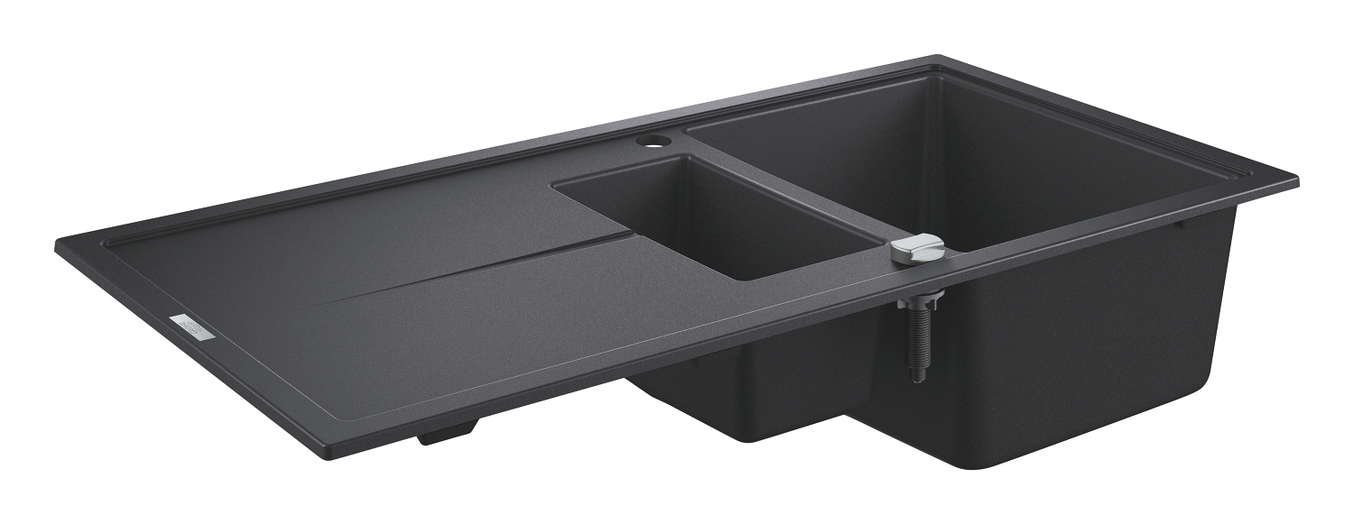 Мийка кухонна Grohe K400, граніт, прямокут., з крилом, 1000x500x205мм, чаша - 2, врізна, чорний граніт