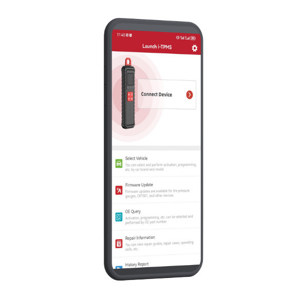 LAUNCH i-TPMS мгновенно и точно считывает ключевые параметры работы датчиков TPMS, включая идентификатор датчика, давление и температуру шин, а также состояние батареи датчика. Устройство поддерживает все датчики с рабочими частотами 315 и 433 МГц и обеспечивает совместимость с более чем 99% автомобилей