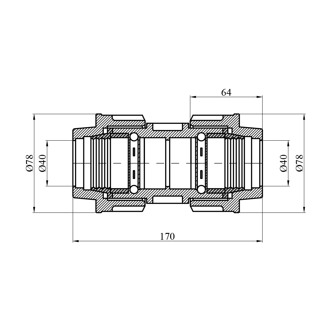 Характеристики Муфта ПЭ STR 40х40 мм код товару CV028550