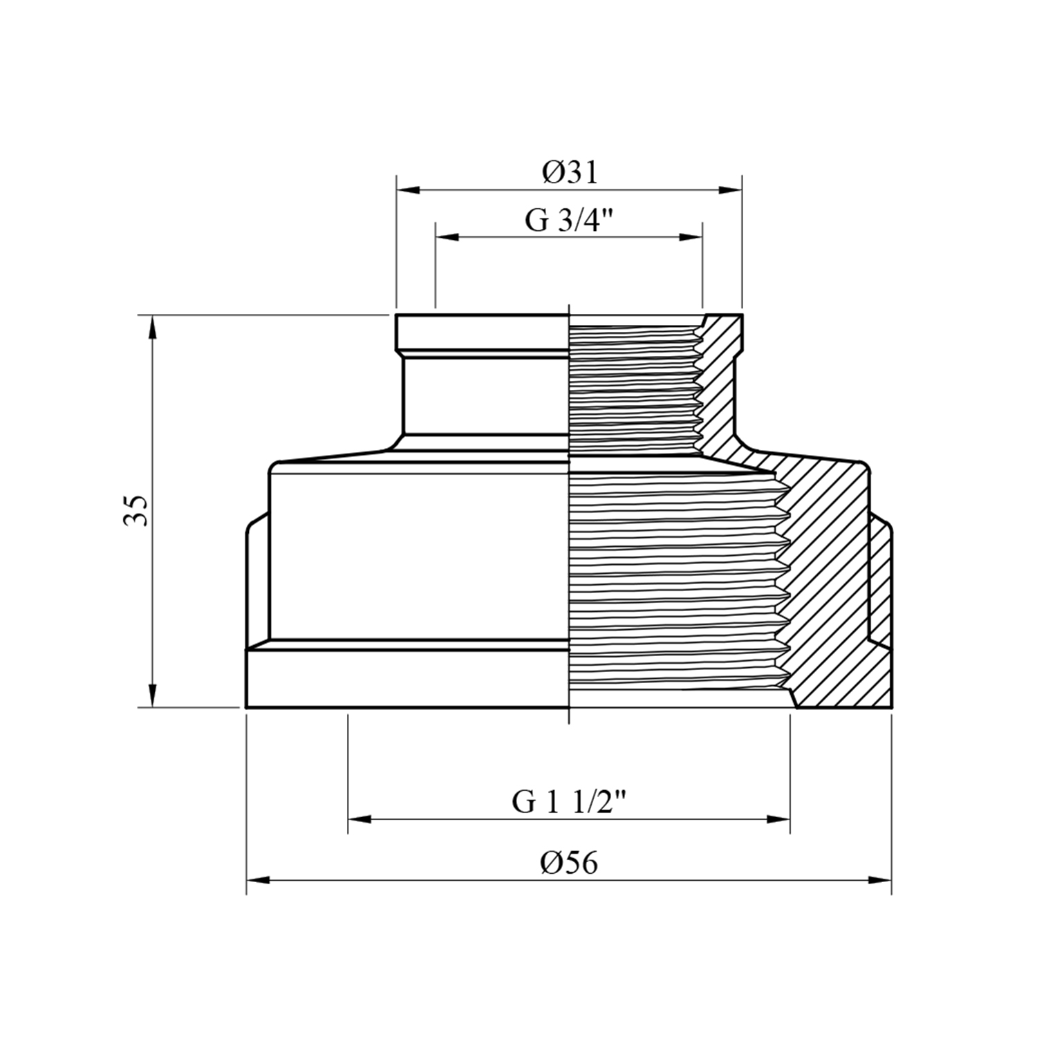 Описание Переходная муфта STA 1 1/2х3/4 ВВ латунная код товару CV013940