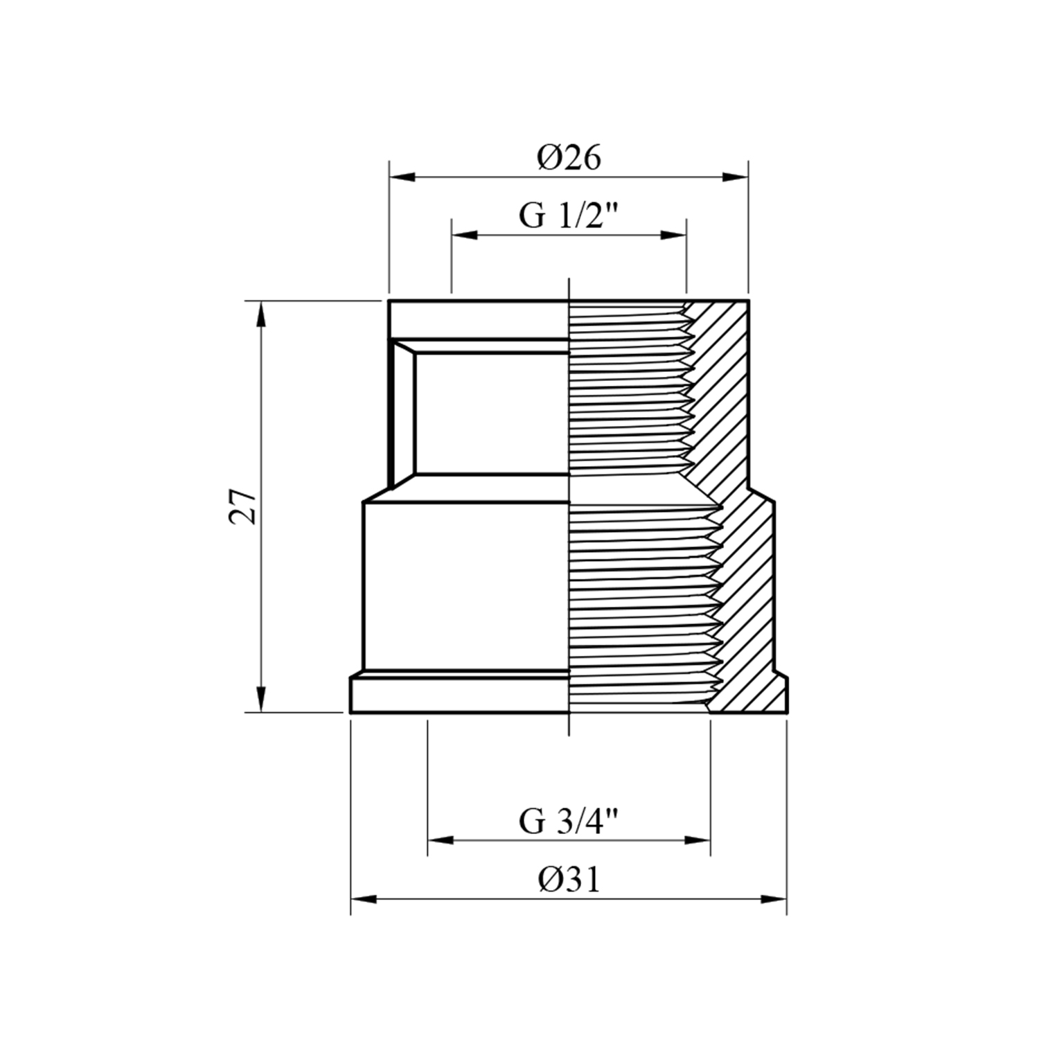 Описание Переходная муфта STA Premium 3/4х1/2 ВВ никелированная код товару CV013867