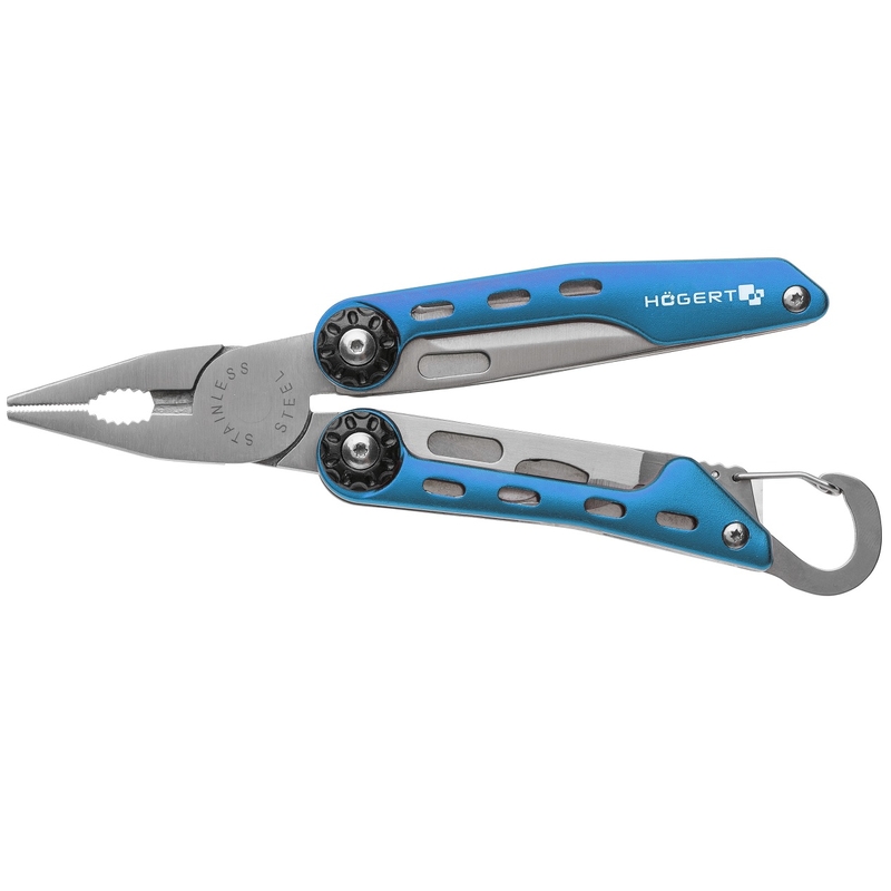 - 10 функцій в одном інструменті: підвіс, відкривачка для пляшок, консервний ніж, хрестова викрутка, плоска викрутка, ніж, пилка, кусачки, пасатижі - 2 профіля;