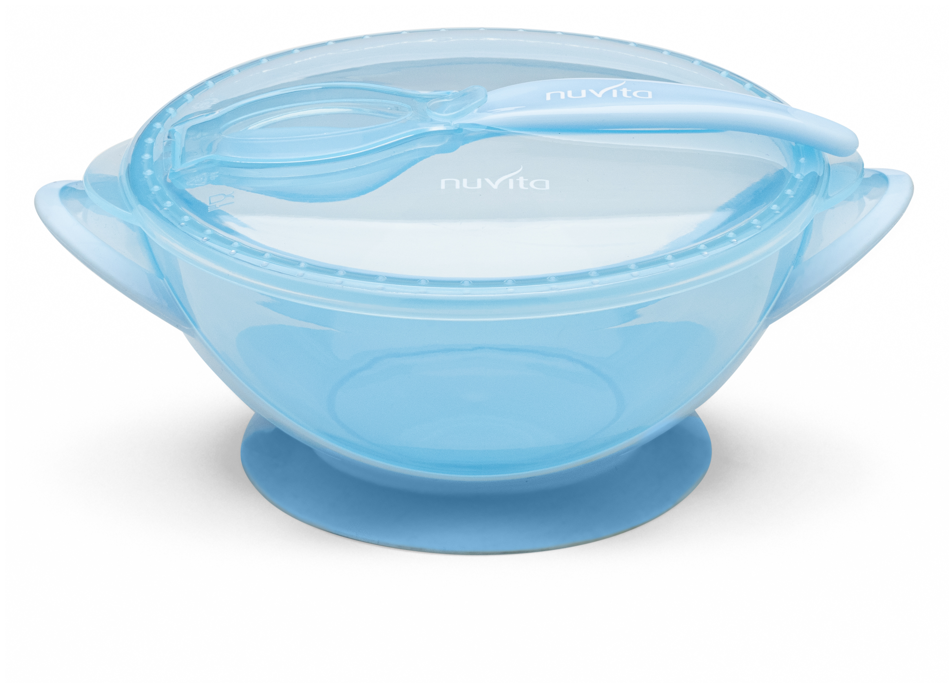 Набір для годування дорожній Nuvita COOL 6м + NV1421COOLBlue блакитного кольору складається з глибокої тарілки з кришкою і ложечкою і підійде для використання і вдома, і в подорожі. Завдяки прогумованій основи-присоски тарілочка надійно фіксується на гладкій поверхні, а спеціальний відсік в кришці дозволить ложці не загубитися і завжди зберігатися в чистоті. Ергономічна форма ложечки спеціально розроблена для зручності у використанні дитячими ручками.