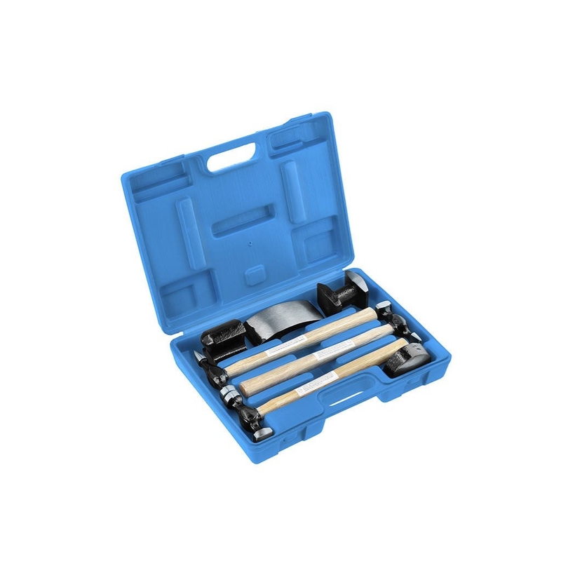 Лимарський набір із семи частин, що складається з молотків із характерними площинами та ковадла різної форми, дугоподібних та опуклих. Практичний і ефективний набір для формування листового металу. Для обробки листів зі сталі та кольорових металів.