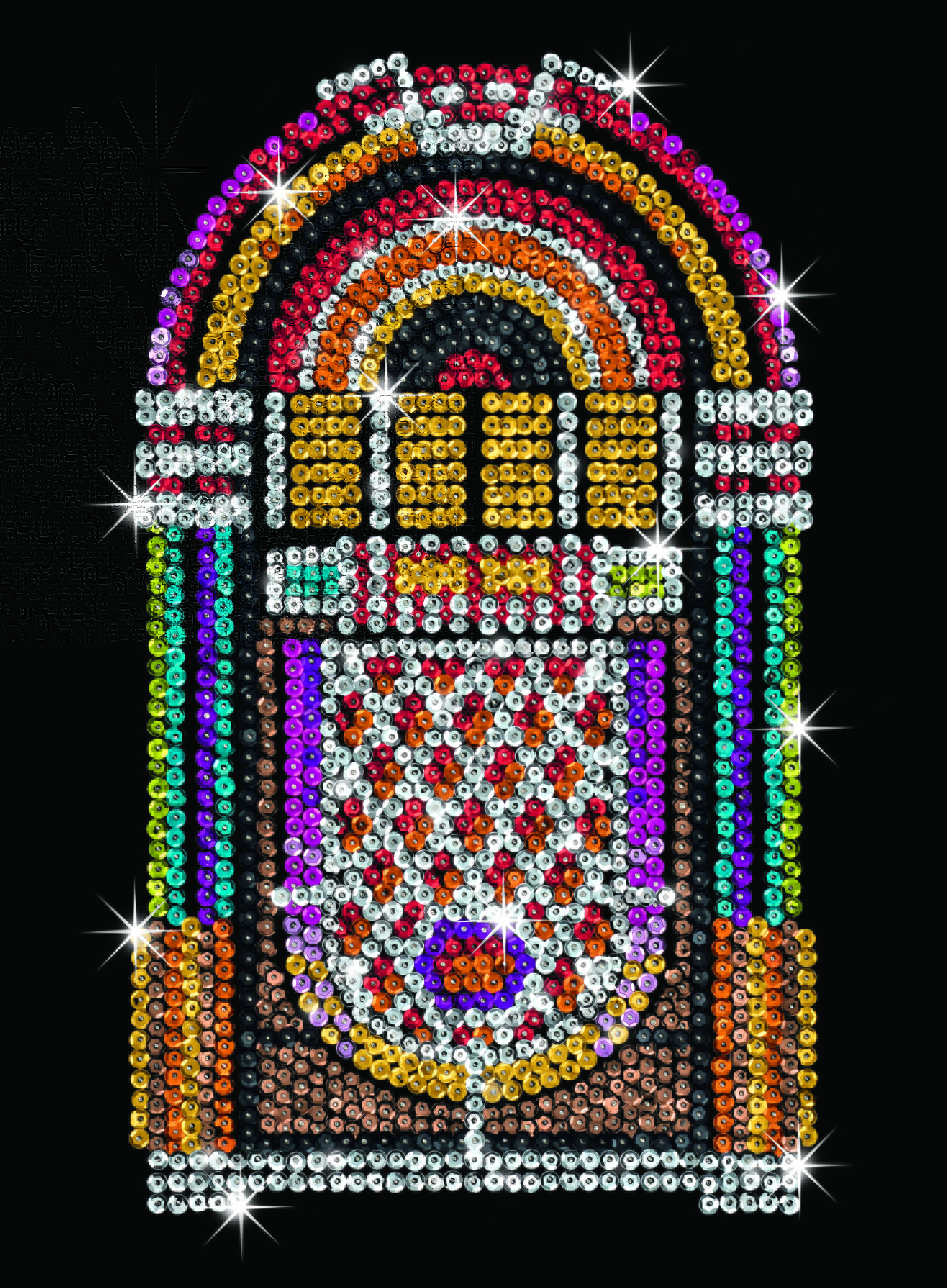 Оригінальна картина із блискіток із зображенням музичного автомата від Sequin Art. В основу з пінопласту, згідно зі схемою, прикріплюються кольорові блискітки за допомогою маленьких шипів. В результаті - ви отримаєте красиву, стильну, блискучу картину! Аплікація блискітками - цікавий і захопливий процес, який вимагає уважності, посидючості й акуратності.