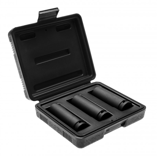 Набір ударних торцевих головок 1/2" для легкосплавних дисків. Набір включає популярні розміри головок 17 мм, 19 мм, 21 мм.