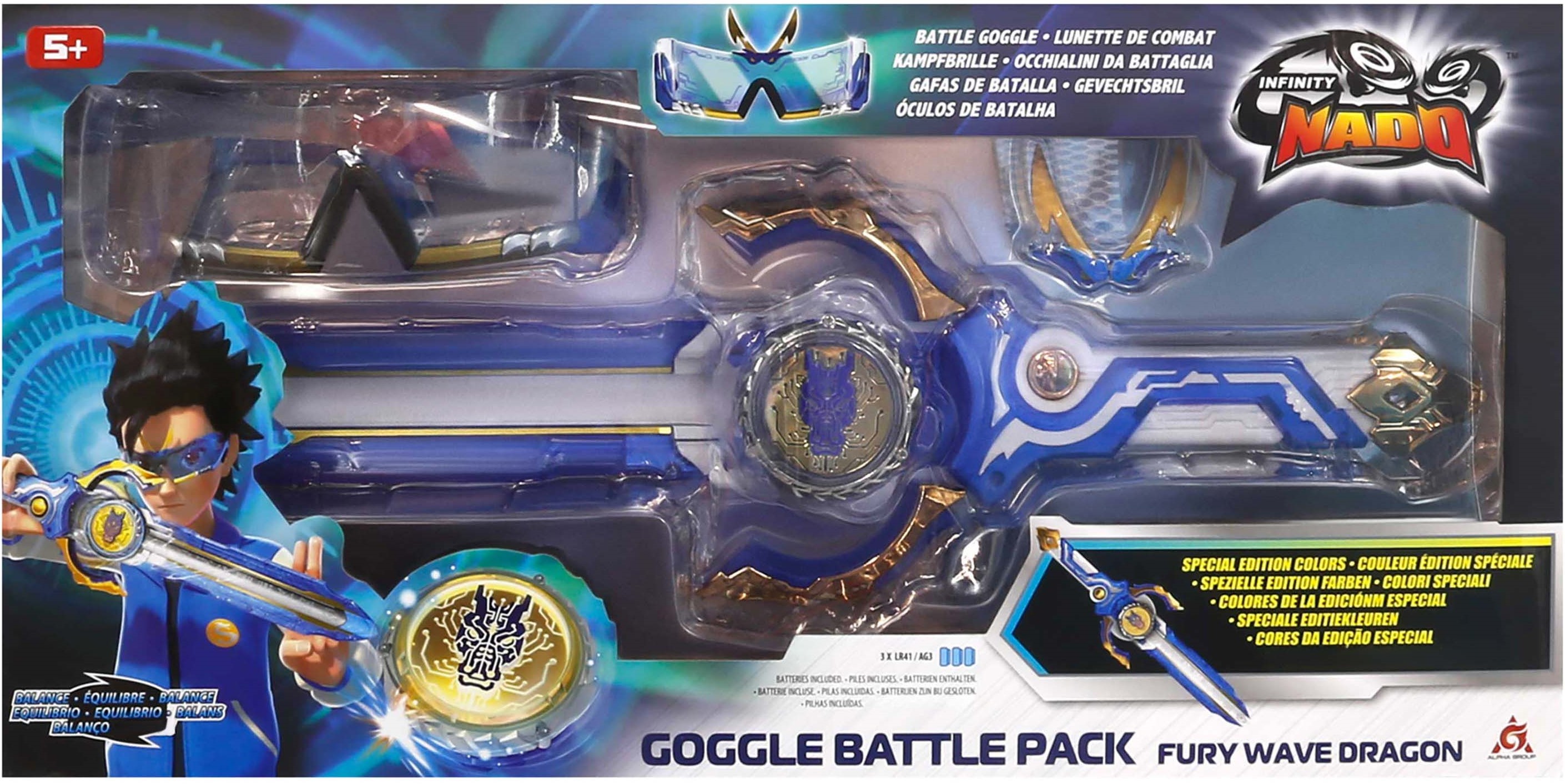 Ігровий набір Infinity Nado VI серії Advanced Pack – дзиґа нового 6 покоління зазнала значних вдосконалень, що беззаперечно подарують нові емоції від ще більш видовищних та цікавих поєдинків. Абсолютно нова система запуску дзиґи на арену реалізована з допомогою епічного лаунчера у вигляді меча, що має більший розмір і вдосконалений зовнішній вигляд, пускова система покликана забезпечить контрольований швидкісний запуск..До набору входить дзиґа 6 покоління, передовий лаунчер меч і бойові окуляри.
